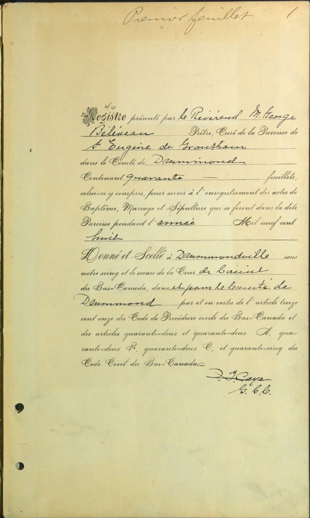 Saint-Eugène-de-Grantham, 1880-1921, Archives nationales à Trois-Rivières, Fonds Cour supérieure. District judiciaire de Drummond. État civil, (04T,CE403,S6).