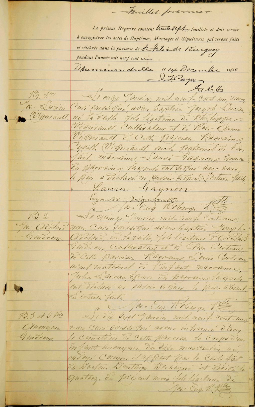 - Cette série regroupe les registres originaux de l'état civil, lesquels contiennent les enregistrements de baptêmes, de mariages et de sépultures consignés par le curé ou son représentant au cours de la période concernée par les documents.Outre les renseignements à caractère généalogique que nous pouvons y puiser, cette série peut constituer une source documentaire importante pour toute étude-statistique ou comparative sur les conditions de vie à différentes époques (mortalité infantile, espérance de vie) ou pour toute recherche portant sur l'occupation des terres (lieu de résidence), sur le mode de vie (métiers et professions, statut et âge des époux), sur les classes sociales (titres des parties impliquées, témoins/amis/parents présents lors d'un mariage), sur des évènements spéciaux (quelques mentions dans les sépultures) et sur des sujets à incidence médicale tels les maladies héréditaires (cause du décès)
