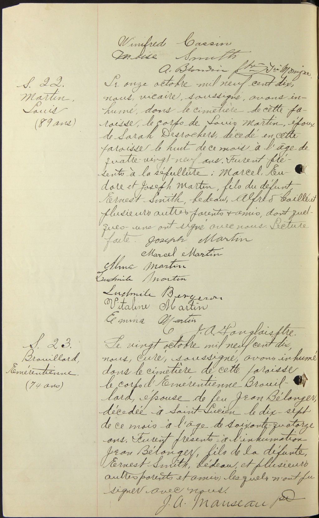- Cette série regroupe les registres originaux de l'état civil, lesquels contiennent les enregistrements de baptêmes, de mariages et de sépultures consignés par le curé ou son représentant au cours de la période concernée par les documents.Outre les renseignements à caractère généalogique que nous pouvons y puiser, cette série peut constituer une source documentaire importante pour toute étude-statistique ou comparative sur les conditions de vie à différentes époques (mortalité infantile, espérance de vie) ou pour toute recherche portant sur l'occupation des terres (lieu de résidence), sur le mode de vie (métiers et professions, statut et âge des époux), sur les classes sociales (titres des parties impliquées, témoins/amis/parents présents lors d'un mariage), sur des évènements spéciaux (quelques mentions dans les sépultures) et sur des sujets à incidence médicale tels les maladies héréditaires (cause du décès)