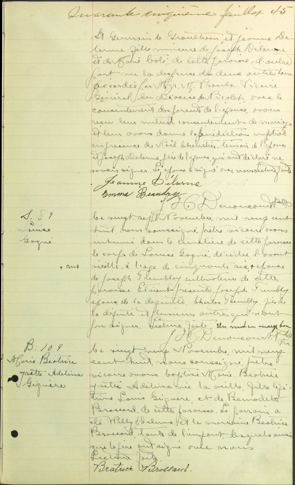 Saint-Frédéric-de-Drummondville, 1817-1921, Archives nationales à Trois-Rivières, Fonds Cour supérieure. District judiciaire de Drummond. État civil, (04T,CE403,S8).