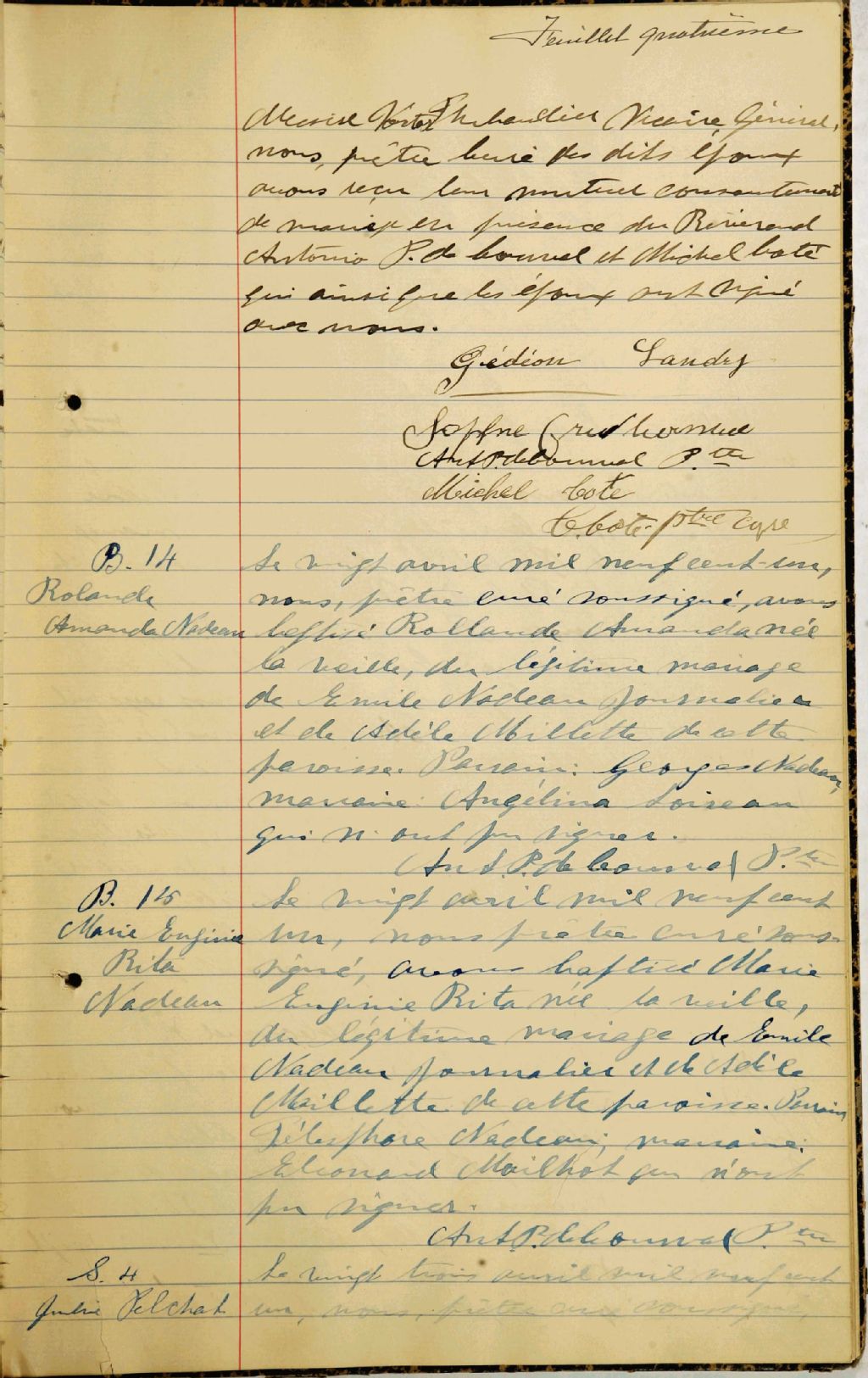 Saint-Fulgence, 1864-1921, Archives nationales à Trois-Rivières, Fonds Cour supérieure. District judiciaire de Drummond. État civil, (04T,CE403,S9).
