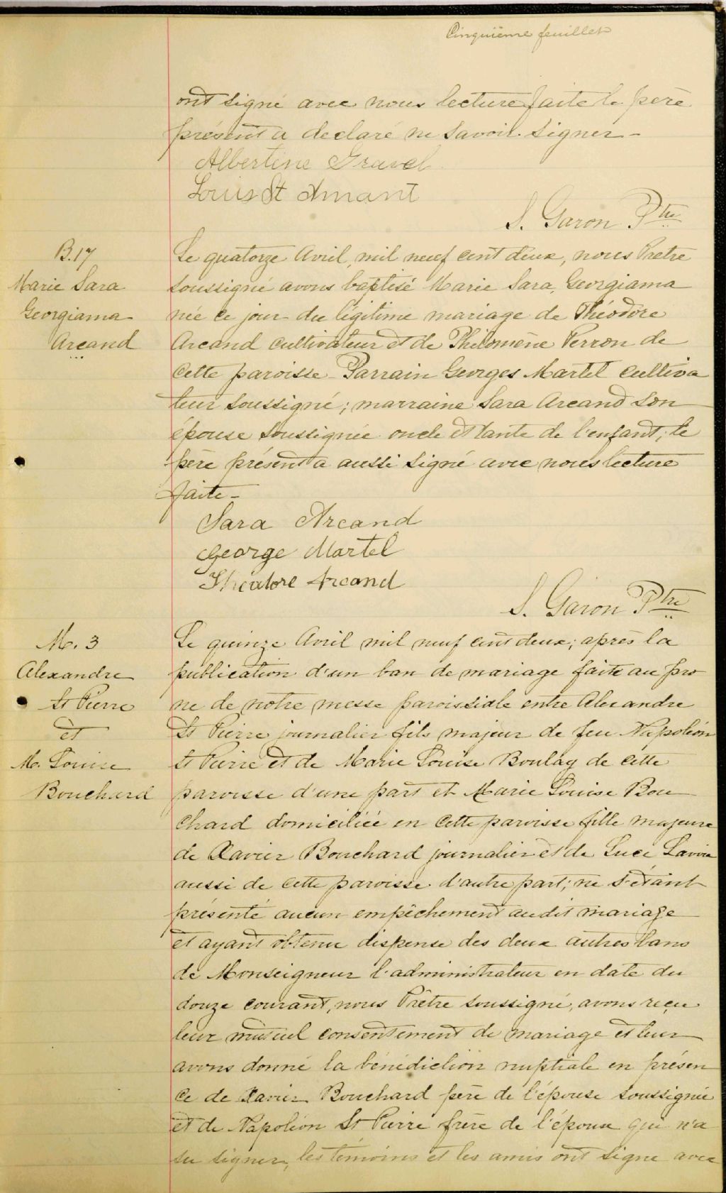 - Cette série regroupe les registres originaux de l'état civil, lesquels contiennent les enregistrements de baptêmes, de mariages et de sépultures consignés par le curé ou son représentant au cours de la période concernée par les documents.Outre les renseignements à caractère généalogique que nous pouvons y puiser, cette série peut constituer une source documentaire importante pour toute étude-statistique ou comparative sur les conditions de vie à différentes époques (mortalité infantile, espérance de vie) ou pour toute recherche portant sur l'occupation des terres (lieu de résidence), sur le mode de vie (métiers et professions, statut et âge des époux), sur les classes sociales (titres des parties impliquées, témoins/amis/parents présents lors d'un mariage), sur des évènements spéciaux (quelques mentions dans les sépultures) et sur des sujets à incidence médicale tels les maladies héréditaires (cause du décès)