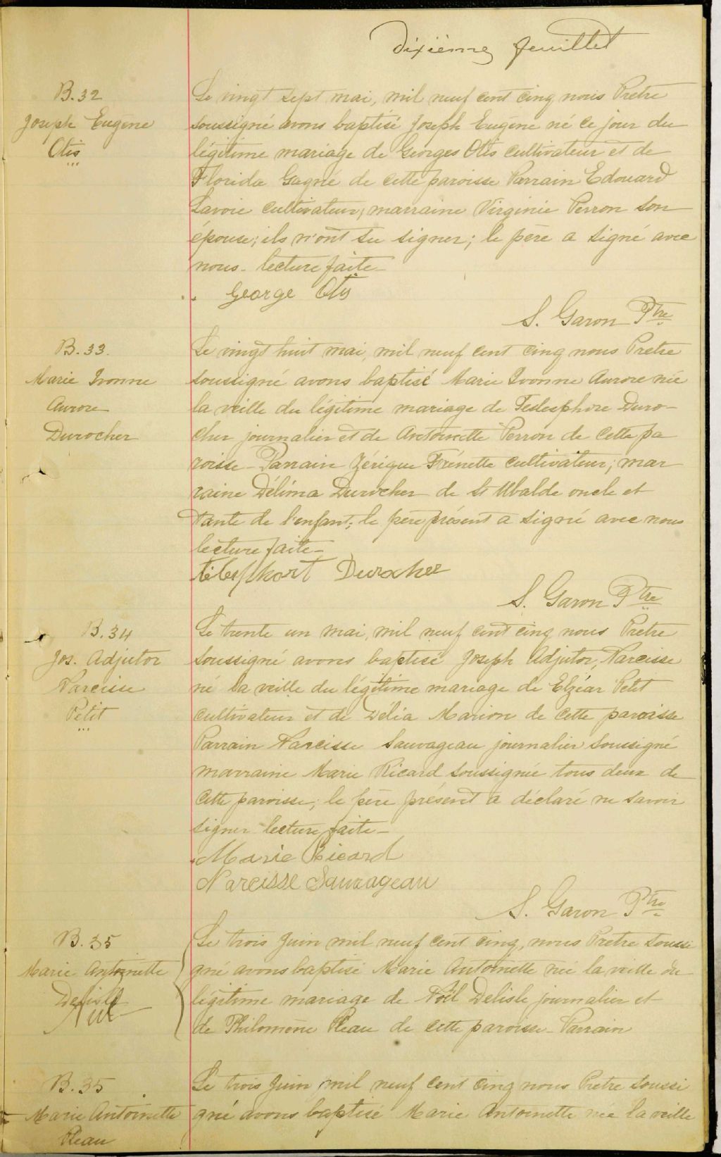 - Cette série regroupe les registres originaux de l'état civil, lesquels contiennent les enregistrements de baptêmes, de mariages et de sépultures consignés par le curé ou son représentant au cours de la période concernée par les documents.Outre les renseignements à caractère généalogique que nous pouvons y puiser, cette série peut constituer une source documentaire importante pour toute étude-statistique ou comparative sur les conditions de vie à différentes époques (mortalité infantile, espérance de vie) ou pour toute recherche portant sur l'occupation des terres (lieu de résidence), sur le mode de vie (métiers et professions, statut et âge des époux), sur les classes sociales (titres des parties impliquées, témoins/amis/parents présents lors d'un mariage), sur des évènements spéciaux (quelques mentions dans les sépultures) et sur des sujets à incidence médicale tels les maladies héréditaires (cause du décès)