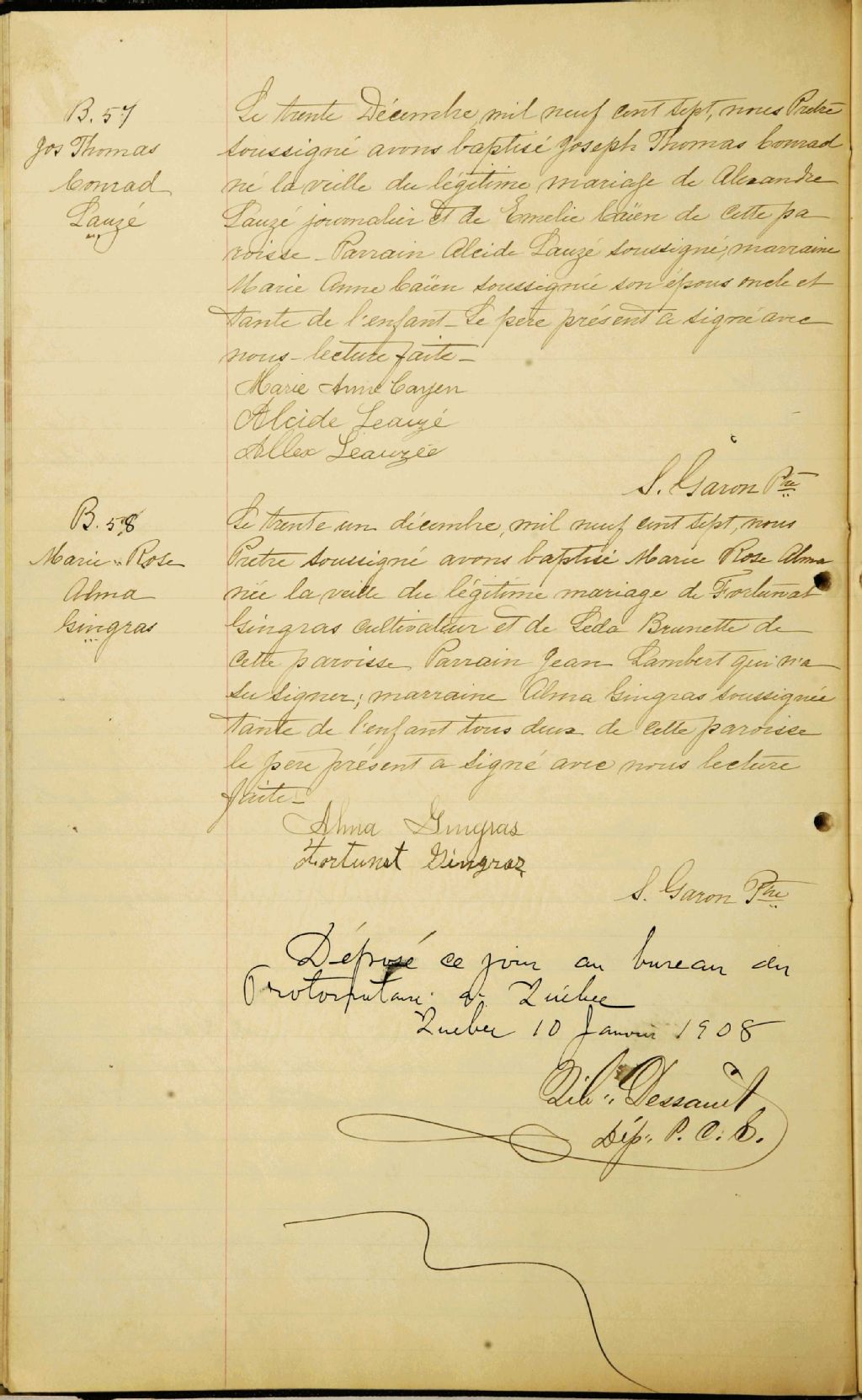 - Cette série regroupe les registres originaux de l'état civil, lesquels contiennent les enregistrements de baptêmes, de mariages et de sépultures consignés par le curé ou son représentant au cours de la période concernée par les documents.Outre les renseignements à caractère généalogique que nous pouvons y puiser, cette série peut constituer une source documentaire importante pour toute étude-statistique ou comparative sur les conditions de vie à différentes époques (mortalité infantile, espérance de vie) ou pour toute recherche portant sur l'occupation des terres (lieu de résidence), sur le mode de vie (métiers et professions, statut et âge des époux), sur les classes sociales (titres des parties impliquées, témoins/amis/parents présents lors d'un mariage), sur des évènements spéciaux (quelques mentions dans les sépultures) et sur des sujets à incidence médicale tels les maladies héréditaires (cause du décès)