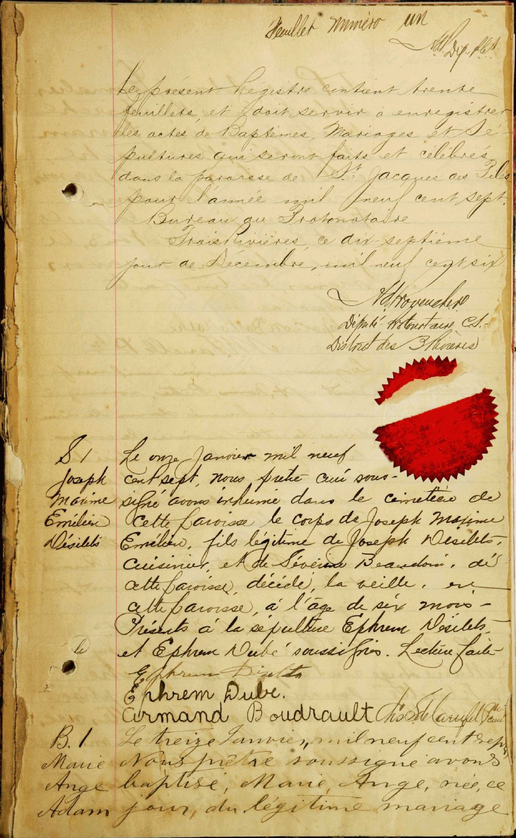 - Cette série regroupe les registres originaux de l'état civil, lesquels contiennent les enregistrements de baptêmes, de mariages et de sépultures consignés par le curé ou son représentant au cours de la période concernée par les documents; des index sont également disponibles à la fin de chacun des registres.Outre les renseignements à caractère généalogique que nous pouvons y puiser, cette série peut constituer une source documentaire importante pour toute étude-statistique ou comparative sur les conditions de vie à différentes époques (mortalité infantile, espérance de vie) ou pour toute recherche portant sur l'occupation des terres (lieu de résidence), sur le mode de vie (métiers et professions, statut et âge des époux), sur les classes sociales (titres des parties impliquées, témoins/amis/parents présents lors d'un mariage), sur des évènements spéciaux (quelques mentions dans les sépultures) et sur des sujets à incidence médicale tels les maladies héréditaires (cause du décès).Cette série regroupe les registres originaux de l'état civil, lesquels contiennent les enregistrements de baptêmes, de mariages et de sépultures consignés par le curé ou son représentant au cours de la période concernée par les documents; des index sont également disponibles à la fin de chacun des registres