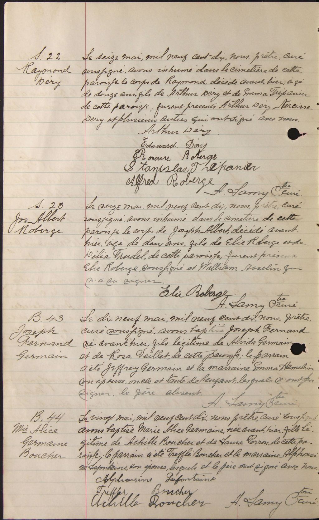 Saint-Adelphe, 1891-1920, Archives nationales à Trois-Rivières, Fonds Cour supérieure. District judiciaire de Saint-Maurice. État civil, (04T,CE404,S14).