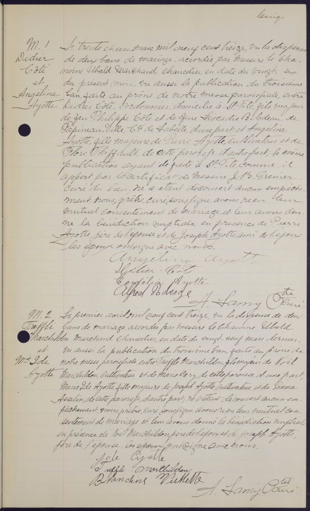 Saint-Adelphe, 1891-1920, Archives nationales à Trois-Rivières, Fonds Cour supérieure. District judiciaire de Saint-Maurice. État civil, (04T,CE404,S14).