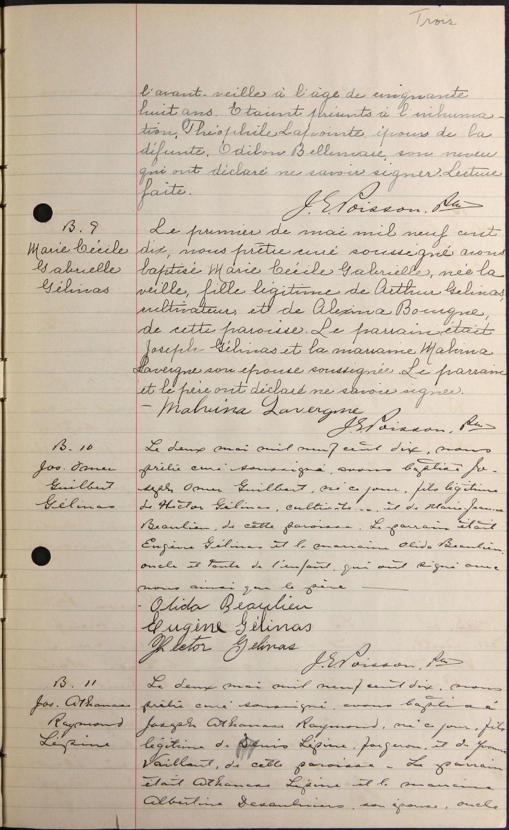 - Cette série regroupe les registres originaux de l'état civil, lesquels contiennent les enregistrements de baptêmes, de mariages et de sépultures consignés par le curé ou son représentant au cours de la période concernée par les documents.Outre les renseignements à caractère généalogique que nous pouvons y puiser, cette série peut constituer une source documentaire importante pour toute étude-statistique ou comparative sur les conditions de vie à différentes époques (mortalité infantile, espérance de vie) ou pour toute recherche portant sur l'occupation des terres (lieu de résidence), sur le mode de vie (métiers et professions, statut et âge des époux), sur les classes sociales (titres des parties impliquées, témoins/amis/parents présents lors d'un mariage), sur des évènements spéciaux (quelques mentions dans les sépultures) et sur des sujets à incidence médicale tels les maladies héréditaires (cause du décès).Les registres couvrant la période 1877 à 1897 et 1899 sont manquants