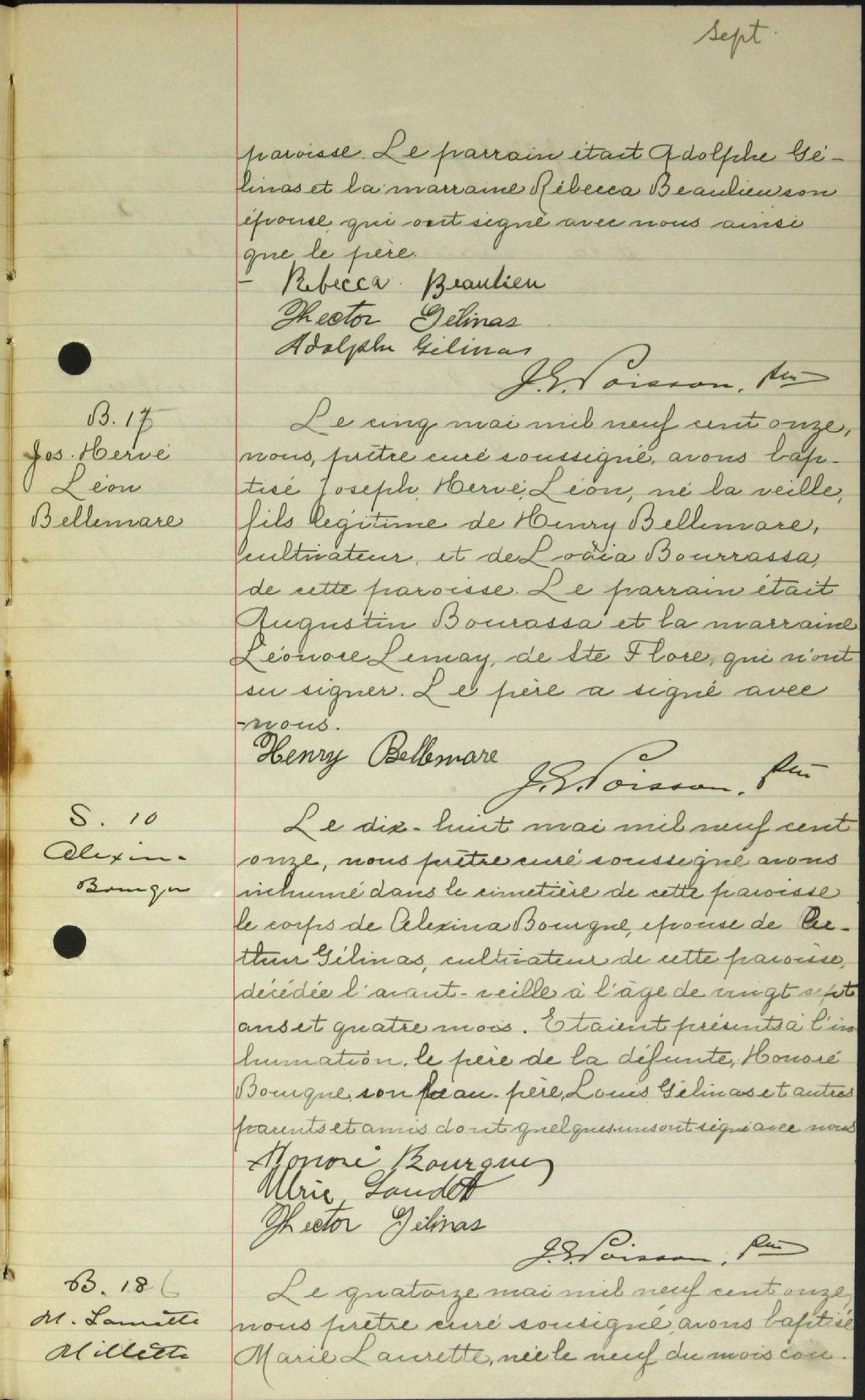 - Cette série regroupe les registres originaux de l'état civil, lesquels contiennent les enregistrements de baptêmes, de mariages et de sépultures consignés par le curé ou son représentant au cours de la période concernée par les documents.Outre les renseignements à caractère généalogique que nous pouvons y puiser, cette série peut constituer une source documentaire importante pour toute étude-statistique ou comparative sur les conditions de vie à différentes époques (mortalité infantile, espérance de vie) ou pour toute recherche portant sur l'occupation des terres (lieu de résidence), sur le mode de vie (métiers et professions, statut et âge des époux), sur les classes sociales (titres des parties impliquées, témoins/amis/parents présents lors d'un mariage), sur des évènements spéciaux (quelques mentions dans les sépultures) et sur des sujets à incidence médicale tels les maladies héréditaires (cause du décès).Les registres couvrant la période 1877 à 1897 et 1899 sont manquants