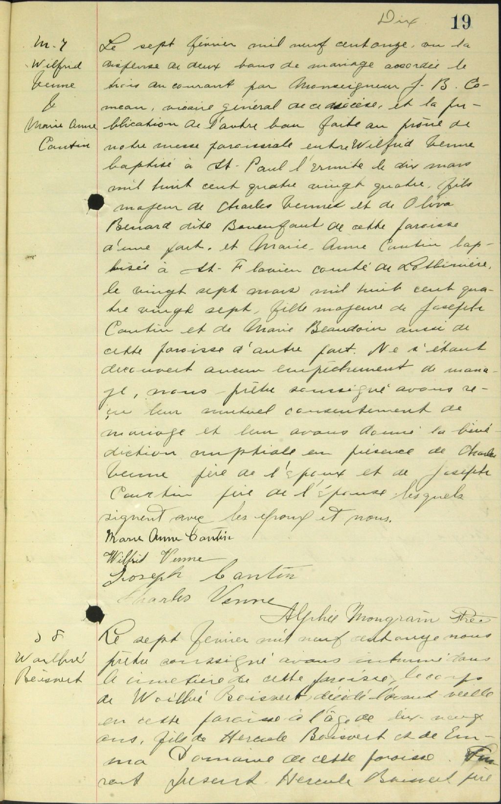 - Cette série regroupe les registres originaux de l'état civil, lesquels contiennent les enregistrements de baptêmes, de mariages et de sépultures consignés par le curé ou son représentant au cours de la période concernée par les documents.Outre les renseignements à caractère généalogique que nous pouvons y puiser, cette série peut constituer une source documentaire importante pour toute étude-statistique ou comparative sur les conditions de vie à différentes époques (mortalité infantile, espérance de vie) ou pour toute recherche portant sur l'occupation des terres (lieu de résidence), sur le mode de vie (métiers et professions, statut et âge des époux), sur les classes sociales (titres des parties impliquées, témoins/amis/parents présents lors d'un mariage), sur des évènements spéciaux (quelques mentions dans les sépultures) et sur des sujets à incidence médicale tels les maladies héréditaires (cause du décès)