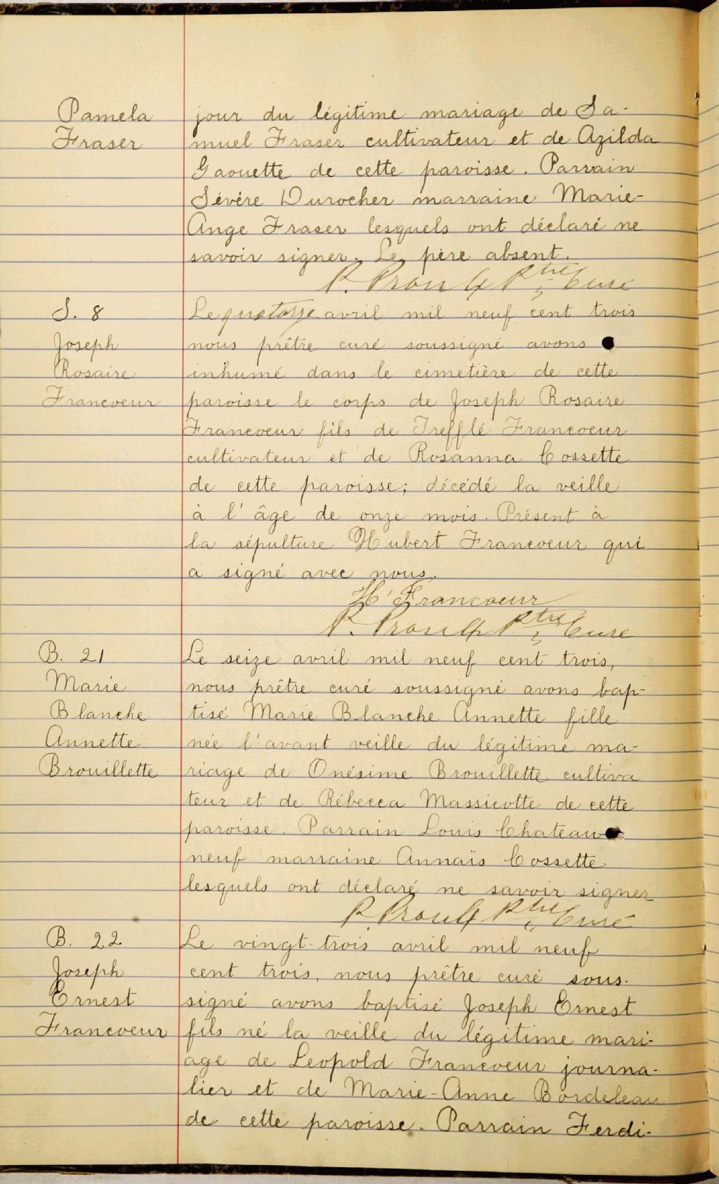 Saint-Séverin, 1890-1920, Archives nationales à Trois-Rivières, Fonds Cour supérieure. District judiciaire de Saint-Maurice. État civil, (04T,CE404,S21).