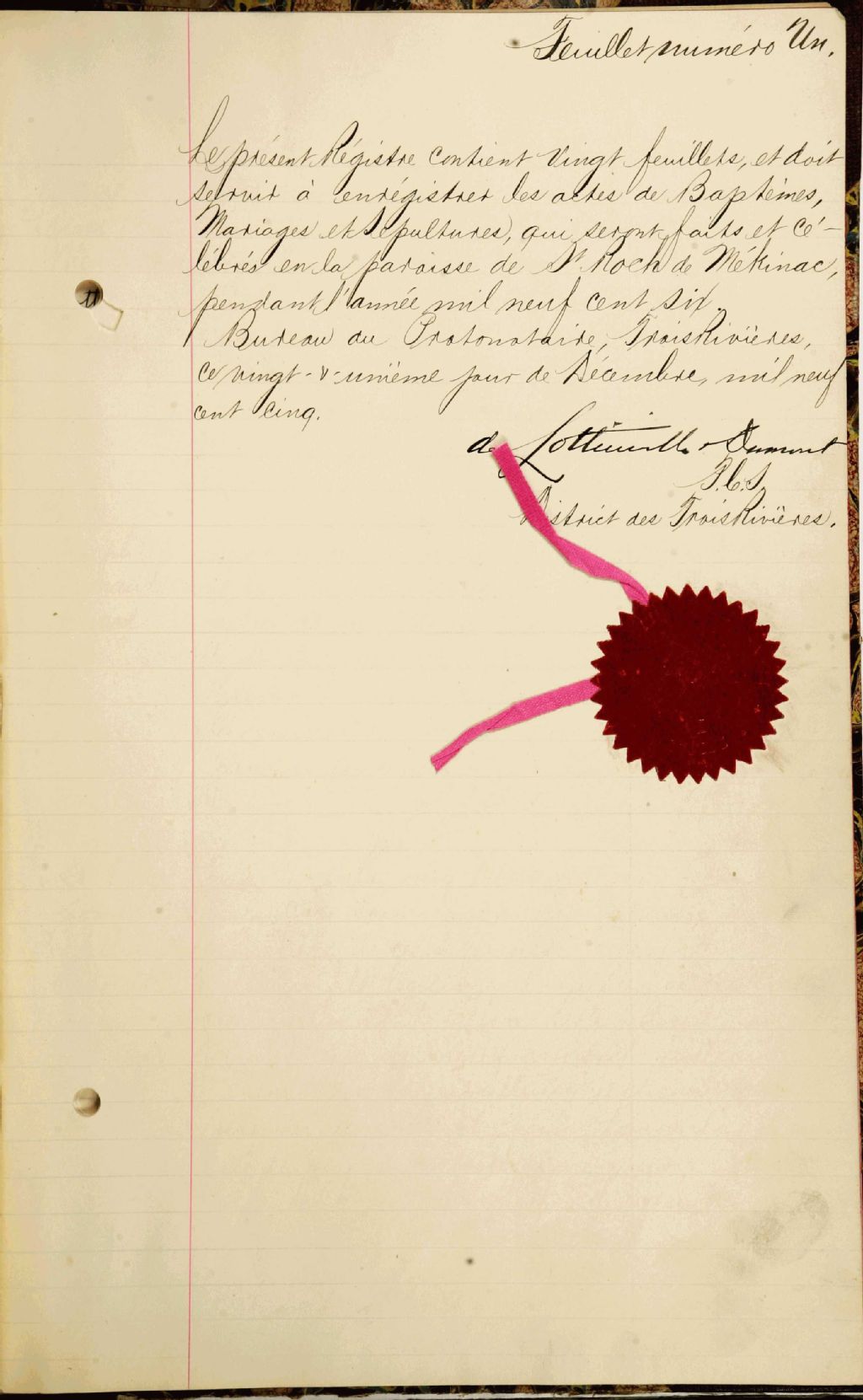 Saint-Roch-de-Mékinac, 1904-1920, Archives nationales à Trois-Rivières, Fonds Cour supérieure. District judiciaire de Saint-Maurice. État civil, (04T,CE404,S28).