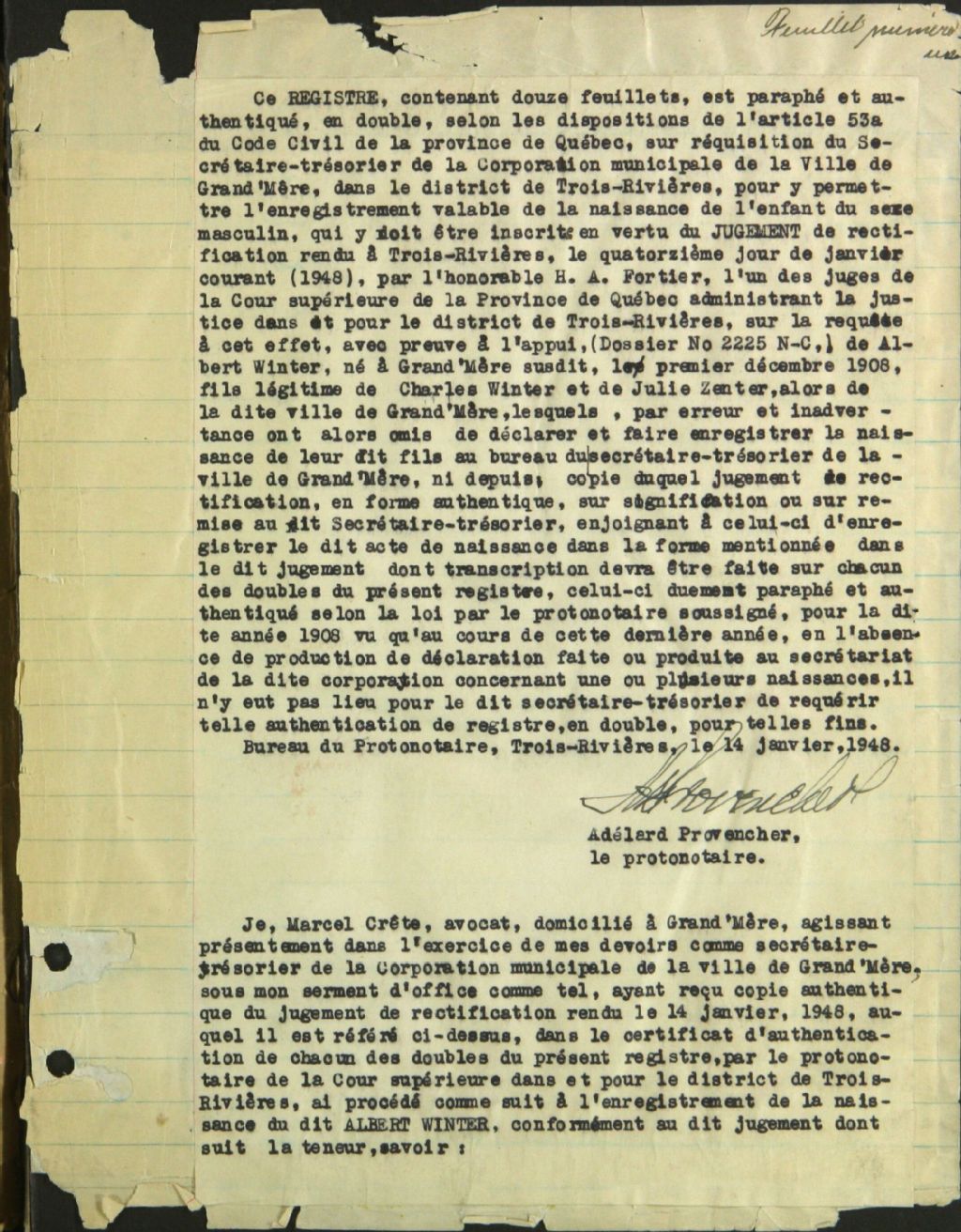Registres relatifs à l'enregistrement obligatoire des enfants non-baptisés, 1908-1912, Archives nationales à Trois-Rivières, Fonds Cour supérieure. District judiciaire de Saint-Maurice. État civil, (04T,CE404,S31).