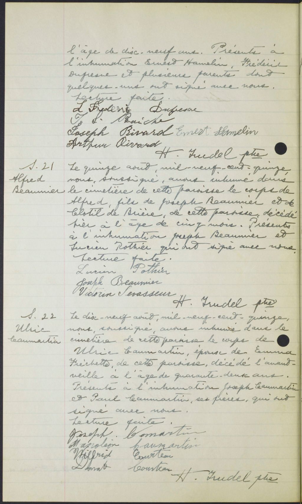 Notre-Dame-de-la-Présentation-d'Almaville, 1910-1920, Archives nationales à Trois-Rivières, Fonds Cour supérieure. District judiciaire de Saint-Maurice. État civil, (04T,CE404,S33).