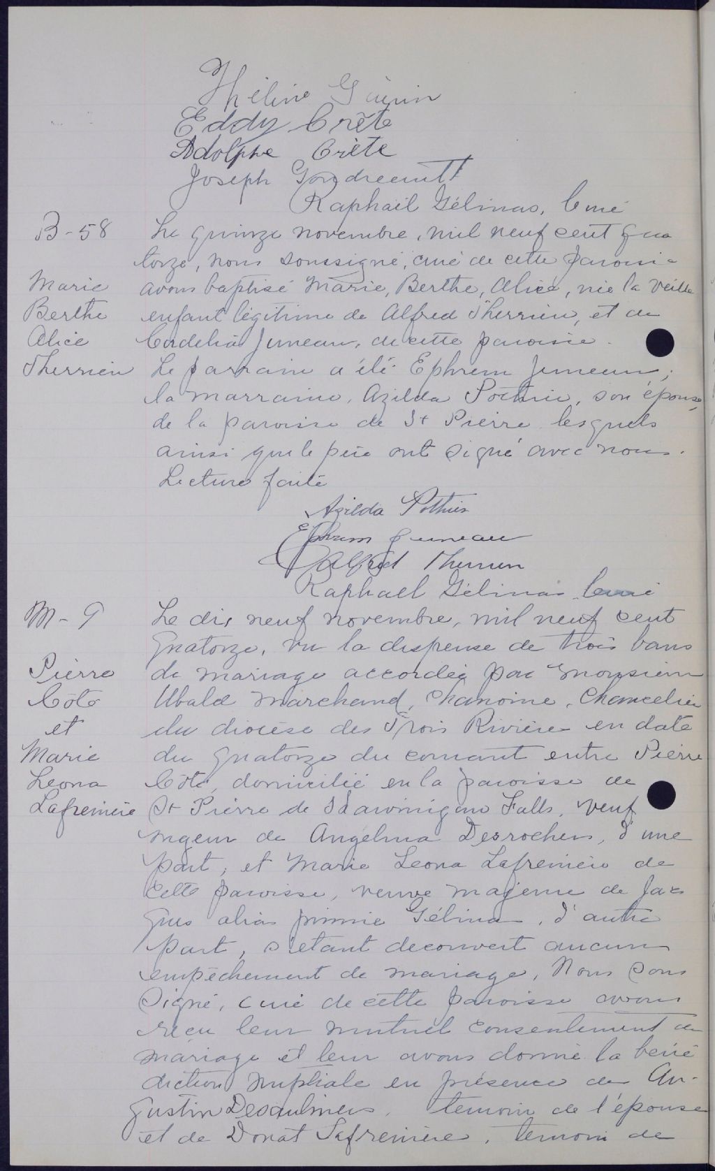 Saint-Marc-de-Shawinigan, 1911-1920, Archives nationales à Trois-Rivières, Fonds Cour supérieure. District judiciaire de Saint-Maurice. État civil, (04T,CE404,S35).