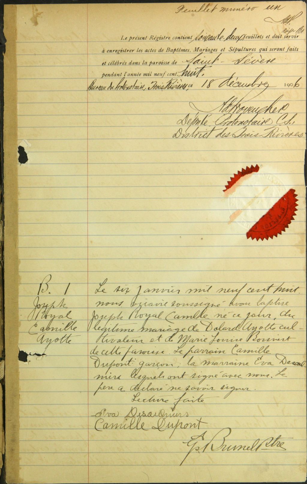 Saint-Sévère, 1856-1920, Archives nationales à Trois-Rivières, Fonds Cour supérieure. District judiciaire de Saint-Maurice. État civil, (04T,CE404,S8).