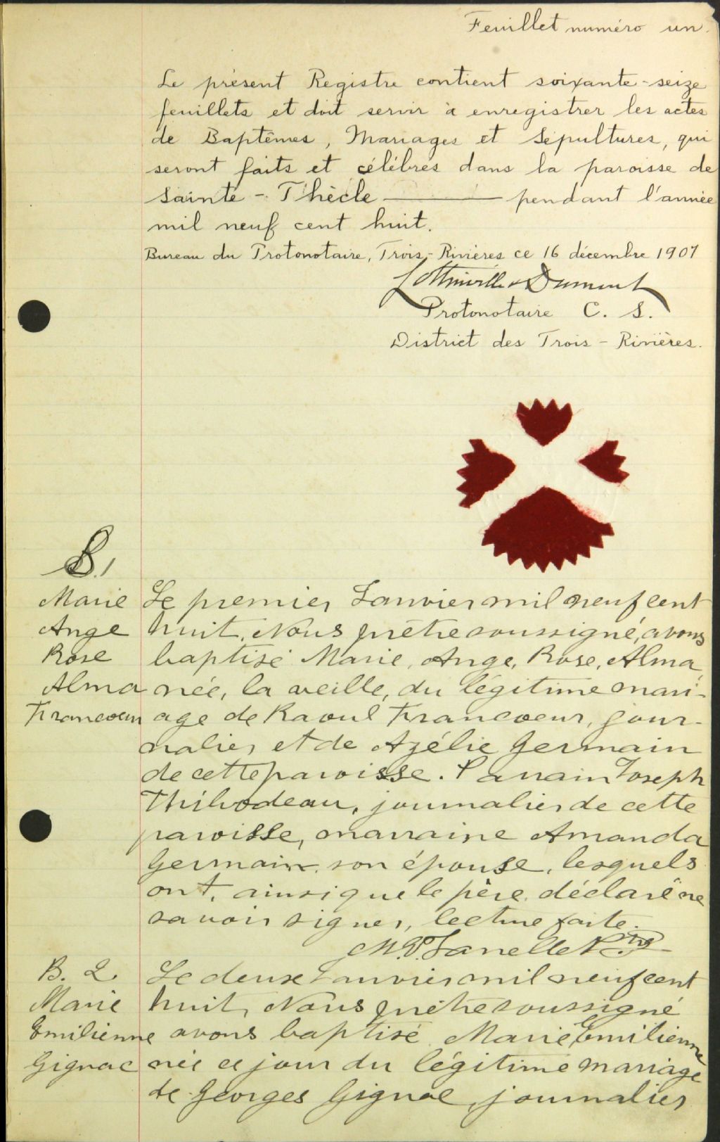 Sainte-Thècle, 1880-1920, Archives nationales à Trois-Rivières, Fonds Cour supérieure. District judiciaire de Saint-Maurice. État civil, (04T,CE404,S9).