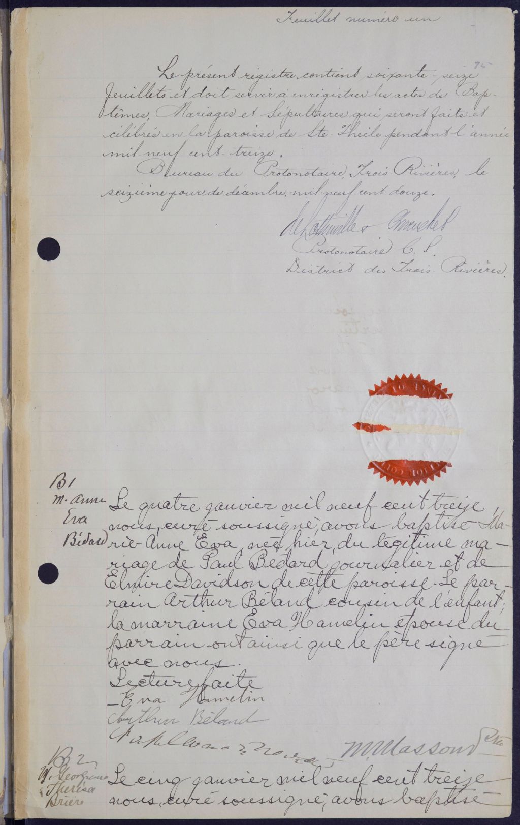 Sainte-Thècle, 1880-1920, Archives nationales à Trois-Rivières, Fonds Cour supérieure. District judiciaire de Saint-Maurice. État civil, (04T,CE404,S9).