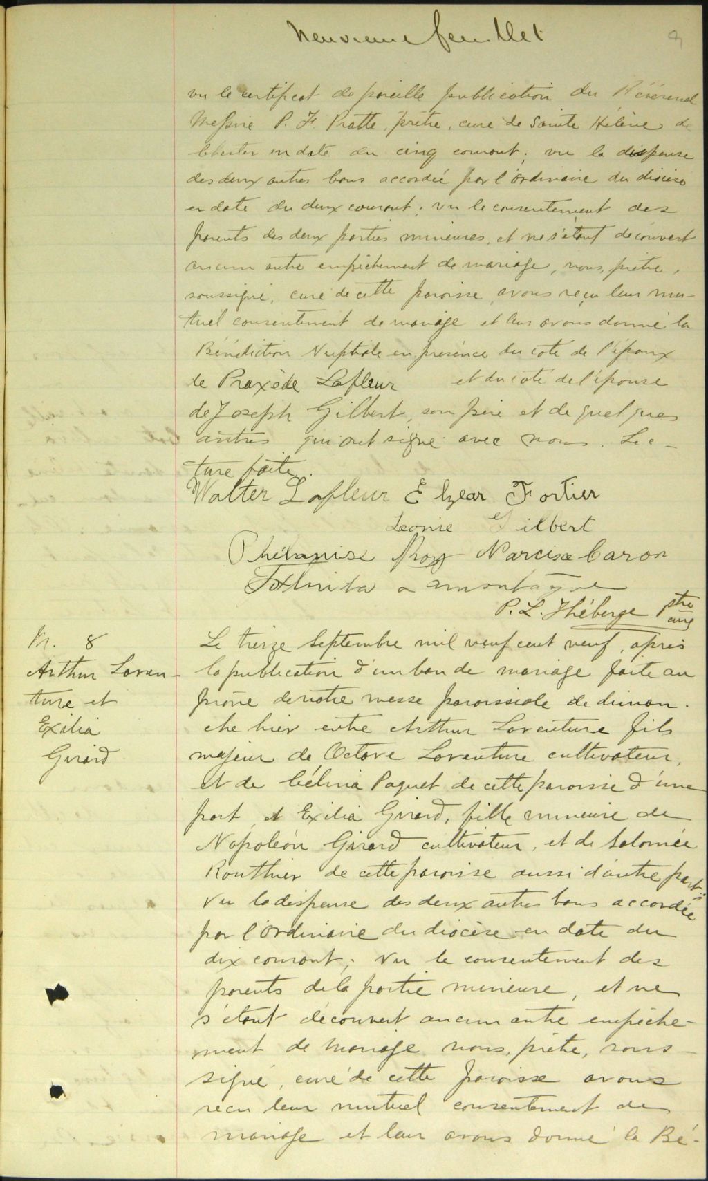 Cette série regroupe les registres originaux de l'état civil, lesquels contiennent les enregistrements de baptêmes, de mariages et de sépultures consignés par le curé ou son représentant desservant la communauté de confession catholique de la paroisse Saint-Fortunat. On retrouve également, en règle générale, un index nominatif à la fin de chaque registre.Pour 1876, voir Saint-Julien (CE501,S17)