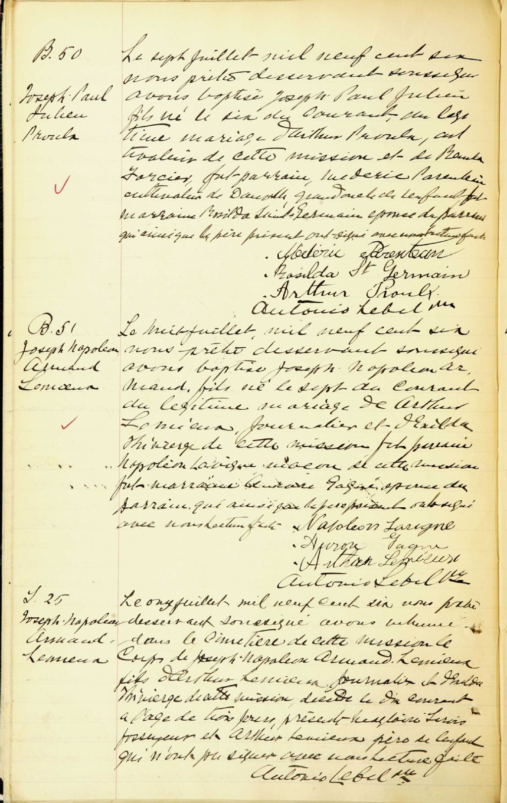 - Cette série regroupe les registres originaux de l'état civil, lesquels contiennent les enregistrements de baptêmes, de mariages et de sépultures consignés par le curé ou son représentant desservant la communauté de confession catholique de la paroisse Saint-Aimé, située à Val-des-Sources. On retrouve également, en règle générale, un index nominatif à la fin de chaque registre
