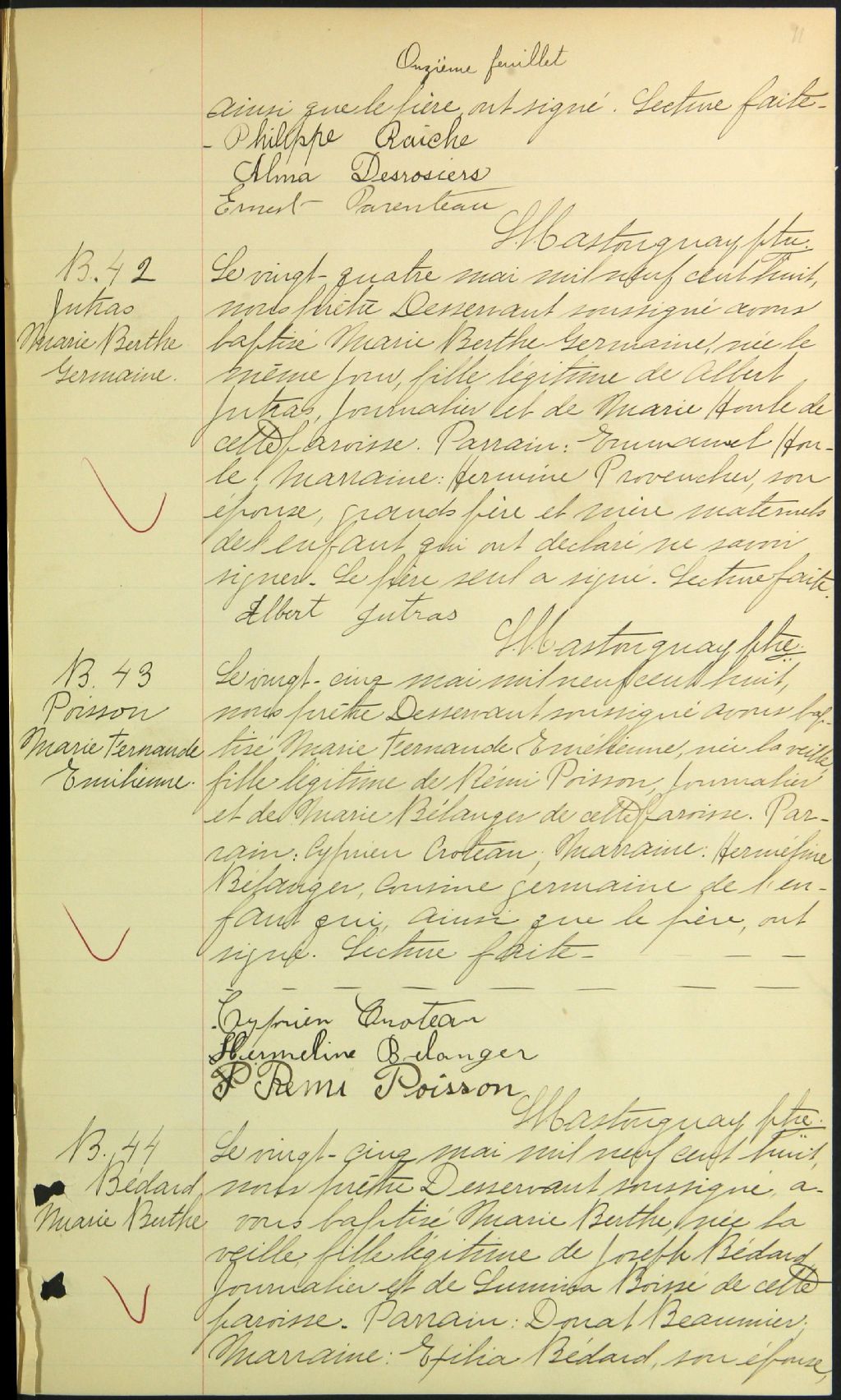 - Cette série regroupe les registres originaux de l'état civil, lesquels contiennent les enregistrements de baptêmes, de mariages et de sépultures consignés par le curé ou son représentant desservant la communauté de confession catholique de la paroisse Saint-Aimé, située à Val-des-Sources. On retrouve également, en règle générale, un index nominatif à la fin de chaque registre