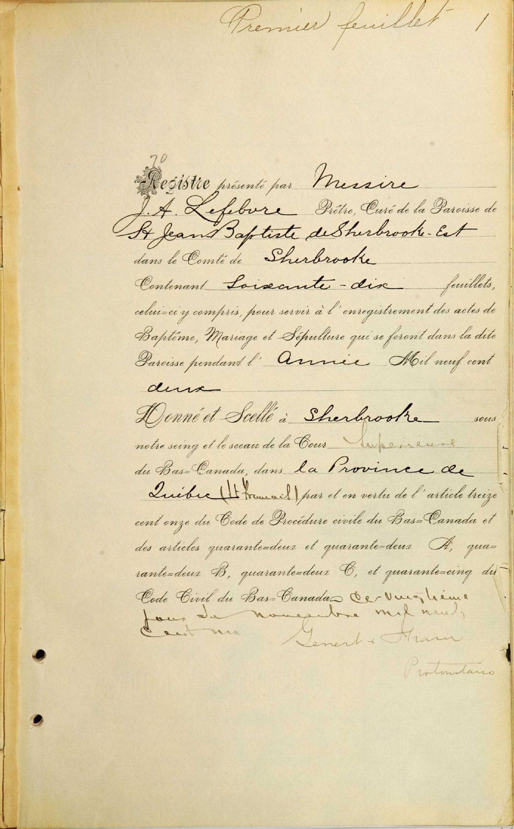 - Cette série regroupe les registres originaux de l'état civil, lesquels contiennent les enregistrements de baptêmes, de mariages et de sépultures consignés par le curé ou son représentant desservant la communauté de confession catholique de la paroisse Saint-Jean-Baptiste. On retrouve également, en règle générale, un index nominatif à la fin de chaque registre.Avant 1884, voir Saint-Michel de Sherbrooke (CE501,S18)