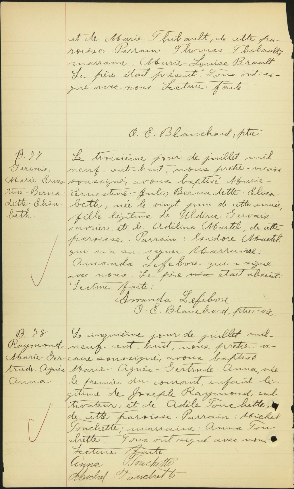 - Cette série regroupe les registres originaux de l'état civil, lesquels contiennent les enregistrements de baptêmes, de mariages et de sépultures consignés par le curé ou son représentant desservant la communauté de confession catholique de la paroisse Saint-Jean-Baptiste. On retrouve également, en règle générale, un index nominatif à la fin de chaque registre.Avant 1884, voir Saint-Michel de Sherbrooke (CE501,S18)