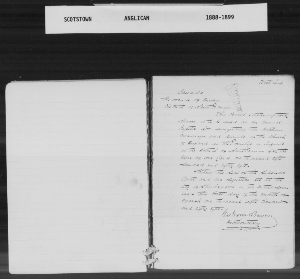 - La série regroupe les registres originaux de l'état civil, lesquels contiennent les enregistrements de baptêmes, de mariages et de sépultures consignés par le ministre ou son représentant desservant la communauté de confession anglicane de Scotstown. On retrouve également, en règle générale, un index nominatif situé à la fin de chaque registreLe registre de 1917 contient plusieurs entrées pour la Canterbury Christ Church, située à Bury