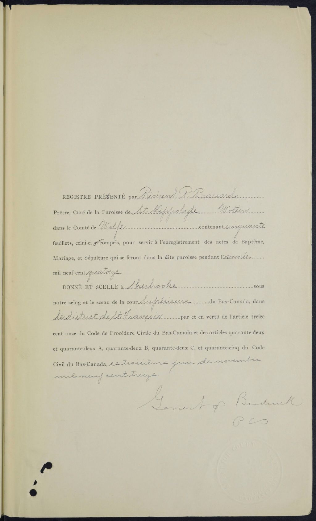 Saint-Hippolyte de Wotton, 1852-1921, Archives nationales à Sherbrooke, Fonds Cour supérieure. District judiciaire de Saint-François. État civil, (05S,CE501,S15).