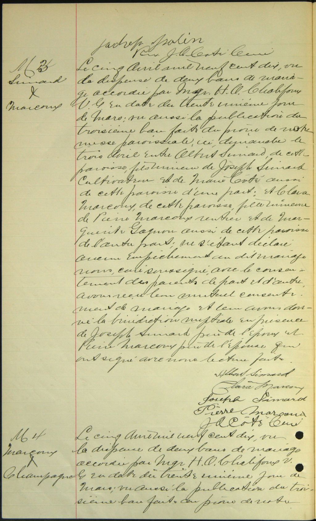 - Cette série regroupe les registres originaux de l'état civil, lesquels contiennent les enregistrements de baptêmes, de mariages et de sépultures consignés par le curé ou son représentant desservant la communauté de confession catholique de la paroisse Saint-Martin de Martinville. On retrouve également, en règle générale, un index nominatif à la fin de chaque registre.Pour 1906, voir Sainte-Edwidge (CE501,S12)