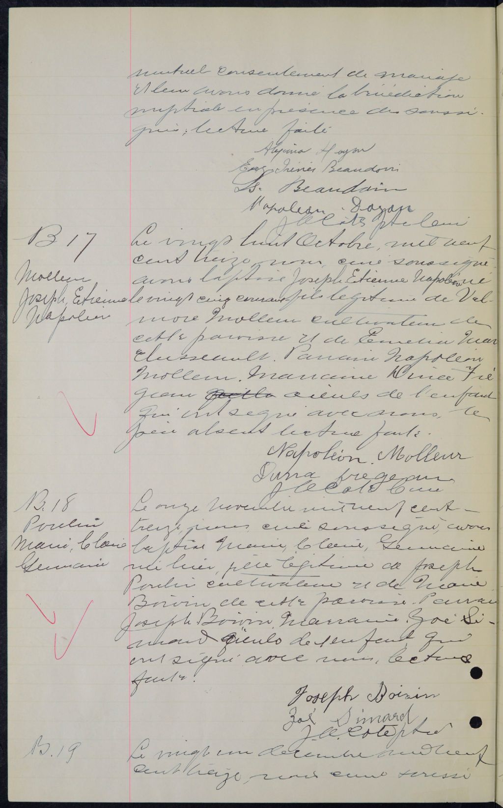 - Cette série regroupe les registres originaux de l'état civil, lesquels contiennent les enregistrements de baptêmes, de mariages et de sépultures consignés par le curé ou son représentant desservant la communauté de confession catholique de la paroisse Saint-Martin de Martinville. On retrouve également, en règle générale, un index nominatif à la fin de chaque registre.Pour 1906, voir Sainte-Edwidge (CE501,S12)