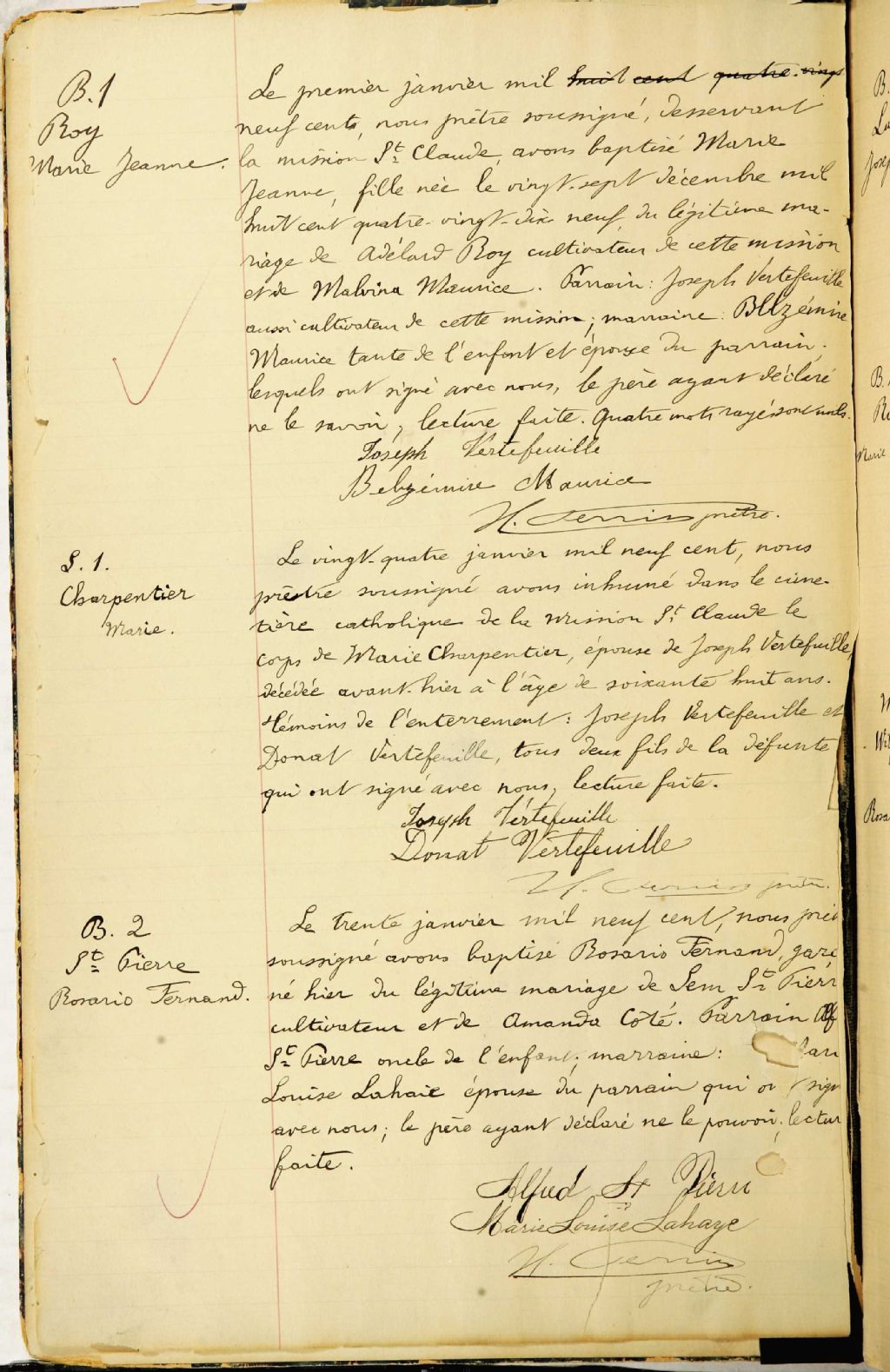 Saint-Claude, 1900-1921, Archives nationales à Sherbrooke, Fonds Cour supérieure. District judiciaire de Saint-François. État civil, (05S,CE501,S157).