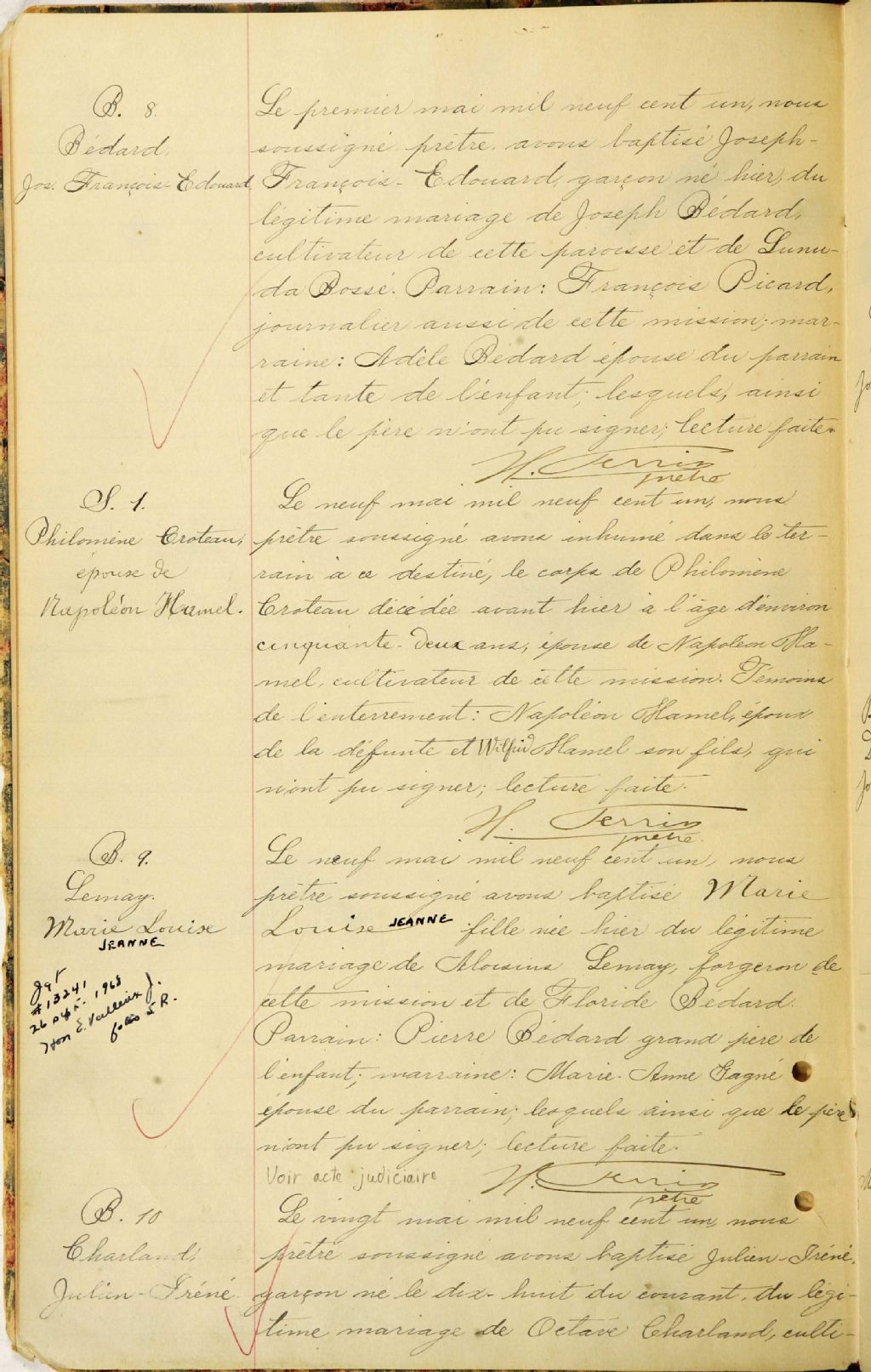 Saint-Claude, 1900-1921, Archives nationales à Sherbrooke, Fonds Cour supérieure. District judiciaire de Saint-François. État civil, (05S,CE501,S157).