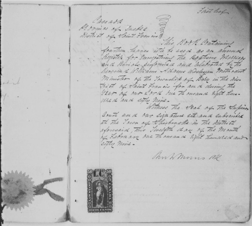- Cette série regroupe les registres originaux de l'état civil, lesquels contiennent les enregistrements de baptêmes, de mariages et de sépultures consignés par le ministre ou son représentant desservant la communauté de confession méthodiste de Bury. On retrouve également, en règle générale, un index nominatif situé à la fin de chaque registre.Les pasteurs méthodistes qui desservaient Bury ont également desservis d¿autres localités avoisinantes situées dans le canton de Bury, tels que Brookbury et Gould Station, mais également des localités situées dans les cantons de Newport, Dudswell et Lingwick.Avant 1863, voir Eaton Methodist Circuit CE501,S77. Avant 1869, voir Marbleton Methodist Church (CE501,S76)