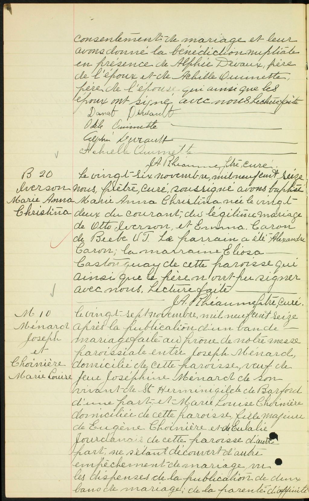 Notre-Dame-de-la-Merci de Rock Island, 1916-1921, Archives nationales à Sherbrooke, Fonds Cour supérieure. District judiciaire de Saint-François. État civil, (05S,CE501,S197).