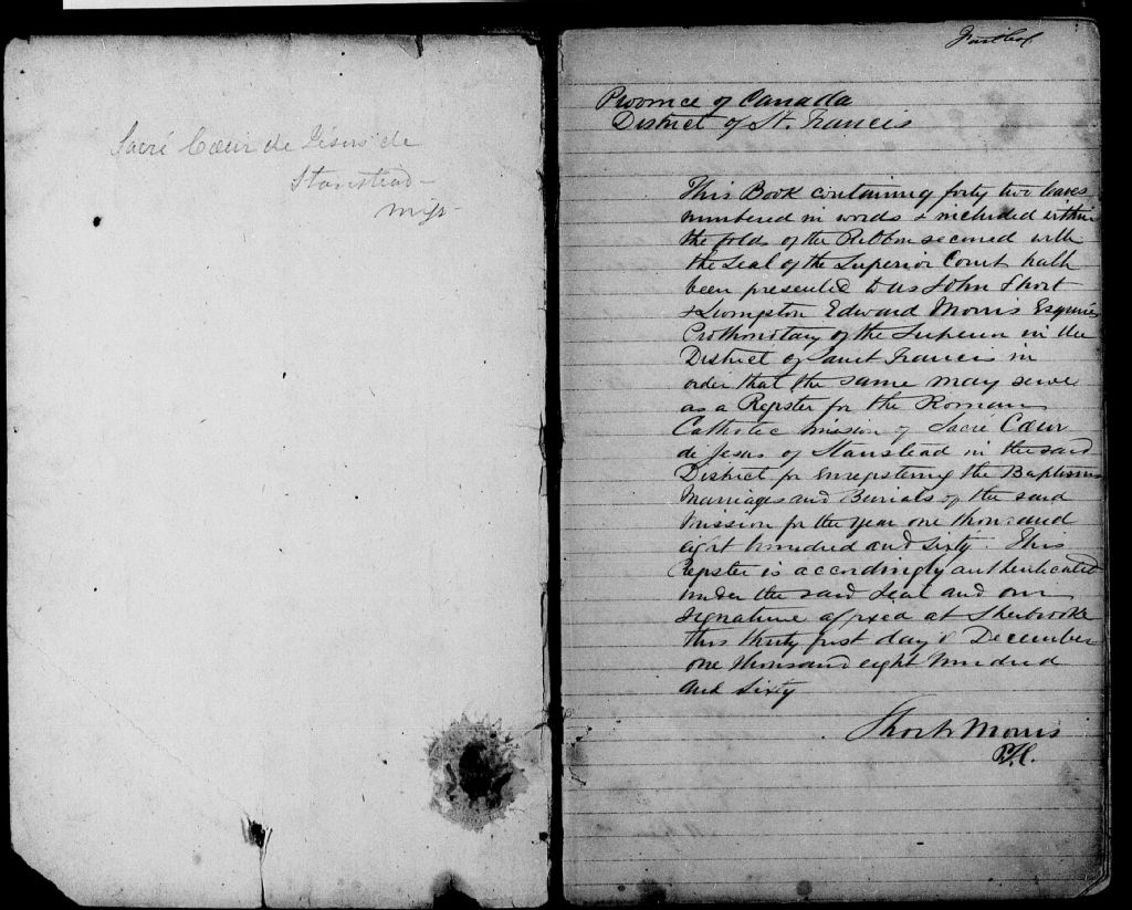 Sacré-Coeur-de-Jésus de Stanstead, 1848-1921, Archives nationales à Sherbrooke, Fonds Cour supérieure. District judiciaire de Saint-François. État civil, (05S,CE501,S2).
