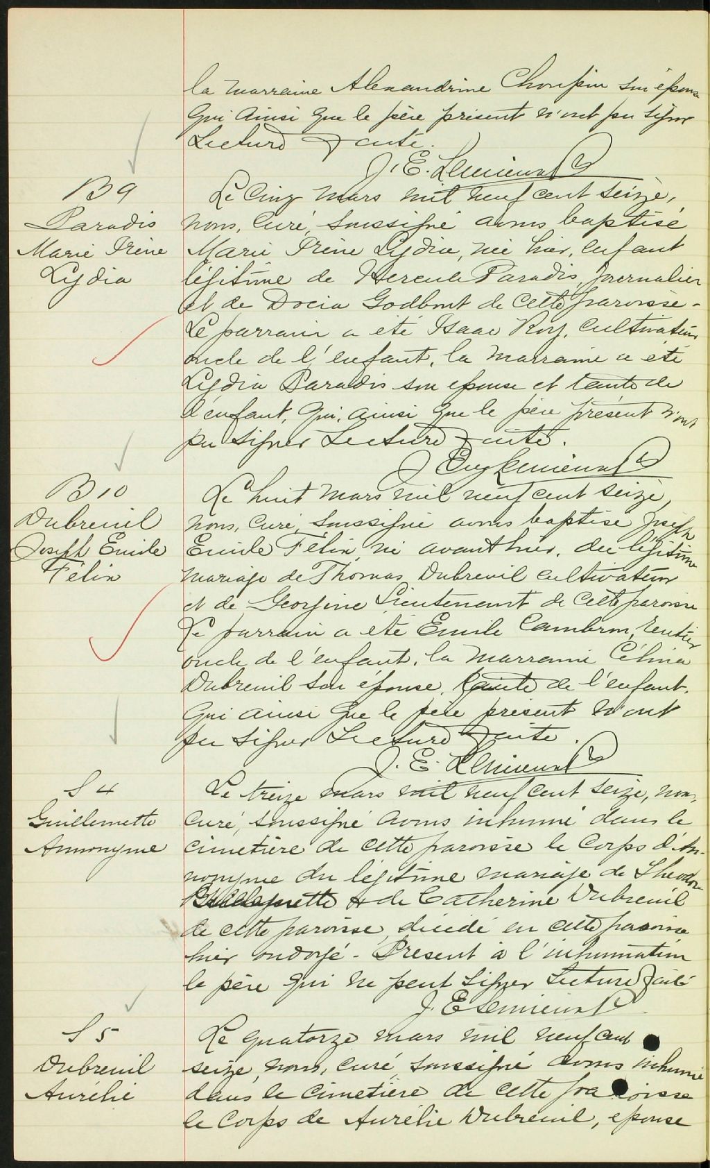 - Cette série regroupe les registres originaux de l'état civil, lesquels contiennent les enregistrements de baptêmes, de mariages et de sépultures consignés par le curé ou son représentant desservant la communauté de confession catholique de la paroisse Saint-Philémon de Stoke. On retrouve également, en règle générale, un index nominatif à la fin de chaque registre