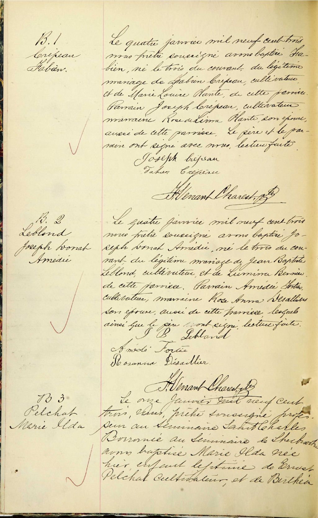 - Cette série regroupe les registres originaux de l'état civil, lesquels contiennent les enregistrements de baptêmes, de mariages et de sépultures consignés par le curé ou son représentant desservant la communauté de confession catholique de la paroisse Saint-Pierre de La Patrie On retrouve également, en règle générale, un index nominatif à la fin de chaque registre.Les registres de 1876 à 1878 comprennent aussi les entrées de Notre-Dame-des-Bois (CE503,S7). Les registres de 1876 à 1882 comprennent aussi les entrées de paroisse La Décollation de Saint-Jean-Baptiste de Chartierville (CE501,S95). Le registre de 1876 comprend aussi les entrées pour la mission Sainte-Famille de Newport (ou d'Island Brook). Les registres de 1886 et 1887 comprennent les entrées pour Saint-Paul de Scotstown (CE501,S109)