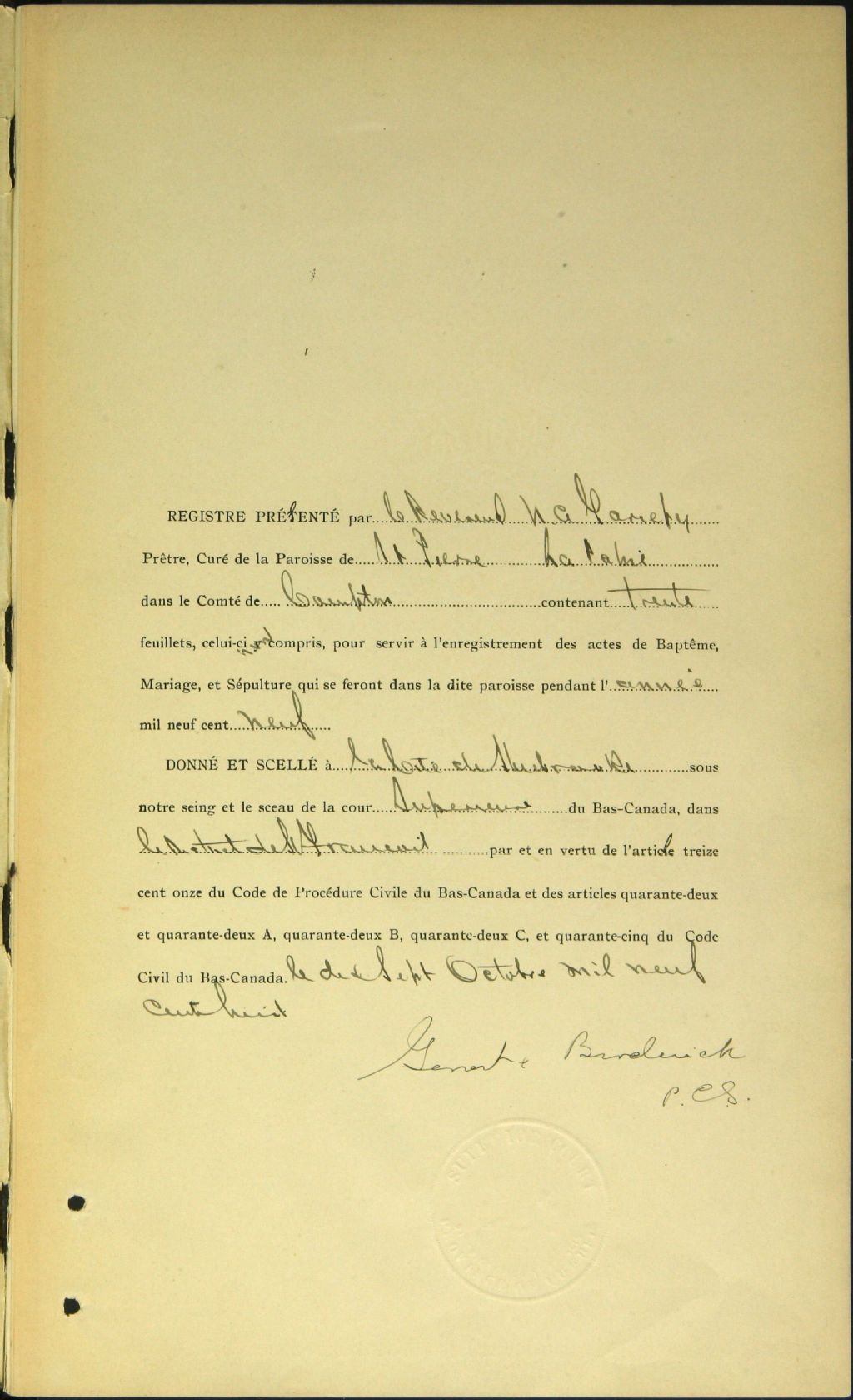 Saint-Pierre de La Patrie, 1876-1921, Archives nationales à Sherbrooke, Fonds Cour supérieure. District judiciaire de Saint-François. État civil, (05S,CE501,S22).