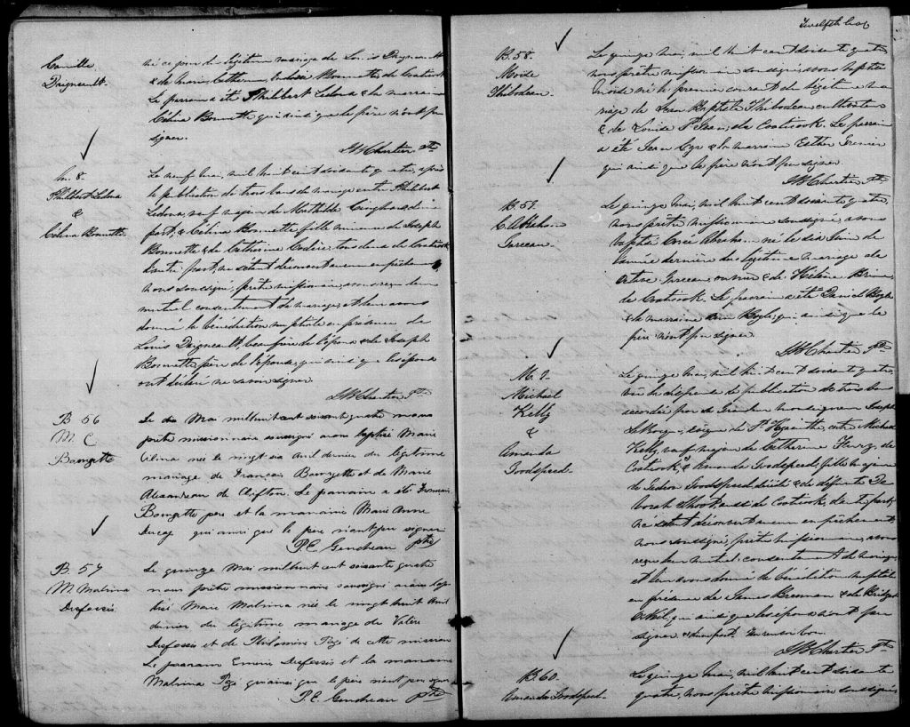 - Cette série regroupe les registres originaux de l'état civil, lesquels contiennent les enregistrements de baptêmes, de mariages et de sépultures consignés par le curé ou son représentant desservant la communauté de confession catholique de la paroisse Saint-Thomas-d¿Aquin de Compton. On retrouve également, en règle générale, un index nominatif à la fin de chaque registre.Les registres de 1862 et 1864 comprennent aussi les entrées pour Saint-Herménégilde (CE501,S14). Les registres de 1862 à 1873 comprennent aussi les entrées de Sainte-Edwidge (CE501,S12). Les registres de 1863 à 1867 comprennent aussi les entrées de Saint-Edmond de Coaticook (CE501,S9). Le registre de 1864 comprend aussi les entrées de Saint-Venant (CE501,S27) et de Saint-Malo (CE501,S107). Les registres de 1864 à 1867 comprennent aussi les entrées de Sainte-Suzanne de Stanhope (CE501,S25). Les registres de 1885 à 1904 comprennent les entrées de Saint-Wilfrid (CE501,S154). Les registres de 1917 et 1918 comprennent aussi des entrées de L'Assomption-de-la-Bienheureuse-Vierge-Marie de Waterville (CE501,S176)