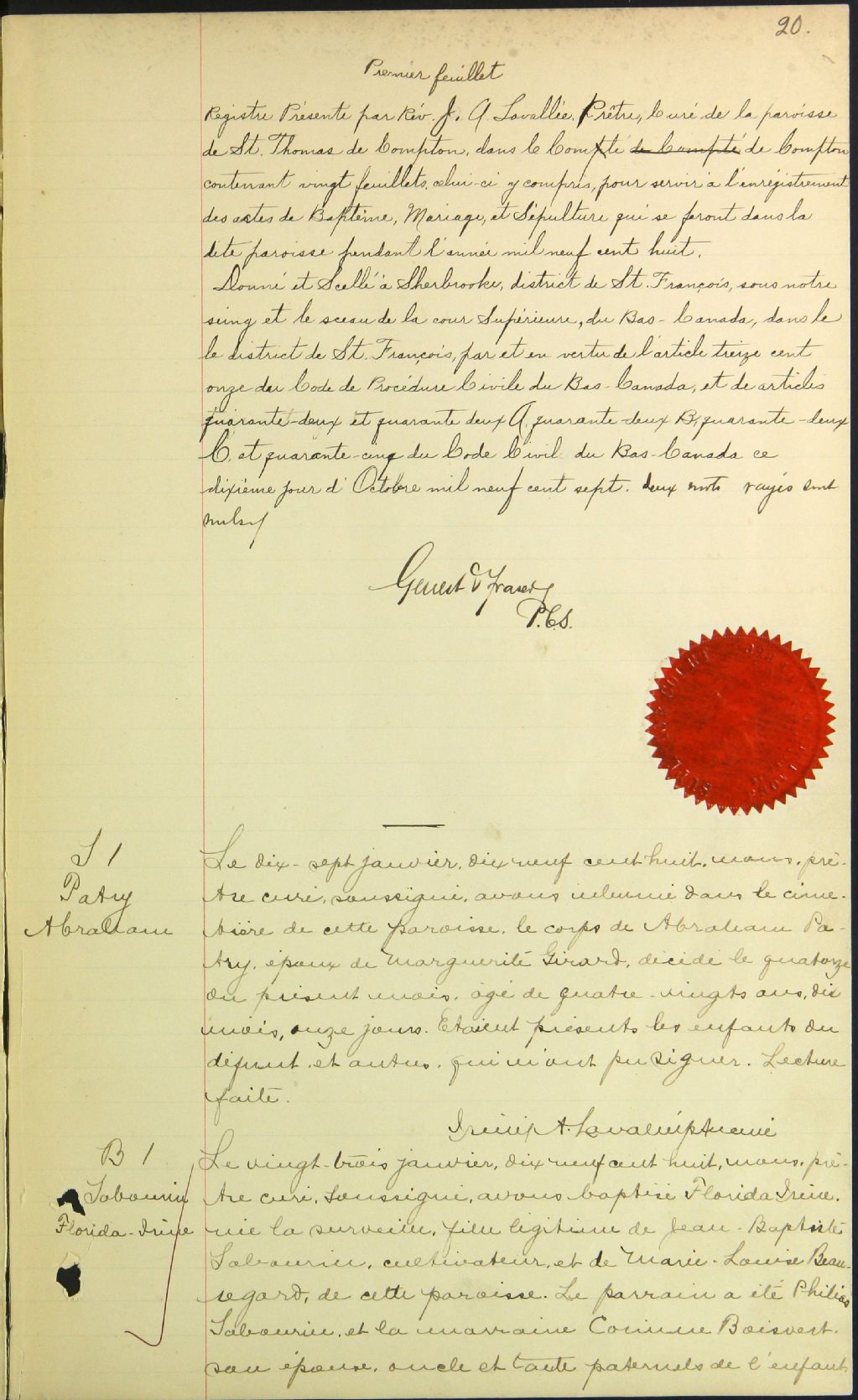 Saint-Thomas-d'Aquin de Compton, 1855-1921, Archives nationales à Sherbrooke, Fonds Cour supérieure. District judiciaire de Saint-François. État civil, (05S,CE501,S26).