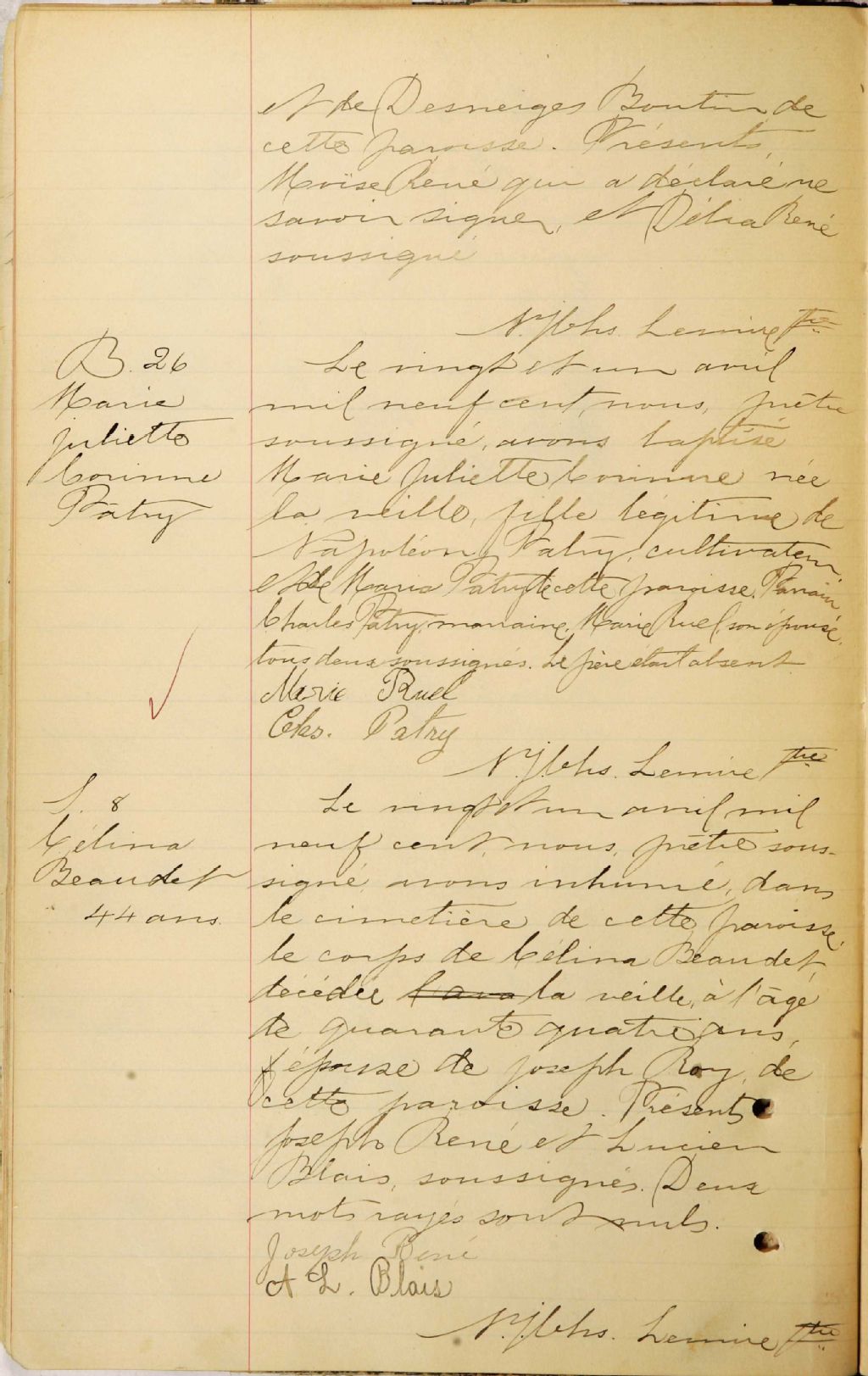 - Cette série regroupe les registres originaux de l'état civil, lesquels contiennent les enregistrements de baptêmes, de mariages et de sépultures consignés par le curé ou son représentant desservant la communauté de confession catholique de la paroisse Saints-Anges de Ham-Nord. On retrouve également, en règle générale, un index nominatif à la fin de chaque registre.Les registres de 1869, 1874 et de 1876 à 1880 comprennent aussi les entrées de Saint-Olivier de Garthby (qui deviendra Saint-Charles-Borromée de Garthby CE305,S35). Les registres de 1877 à 1883 comprennent aussi les entrées de la paroisse Saint-Adrien (CE501,S99).