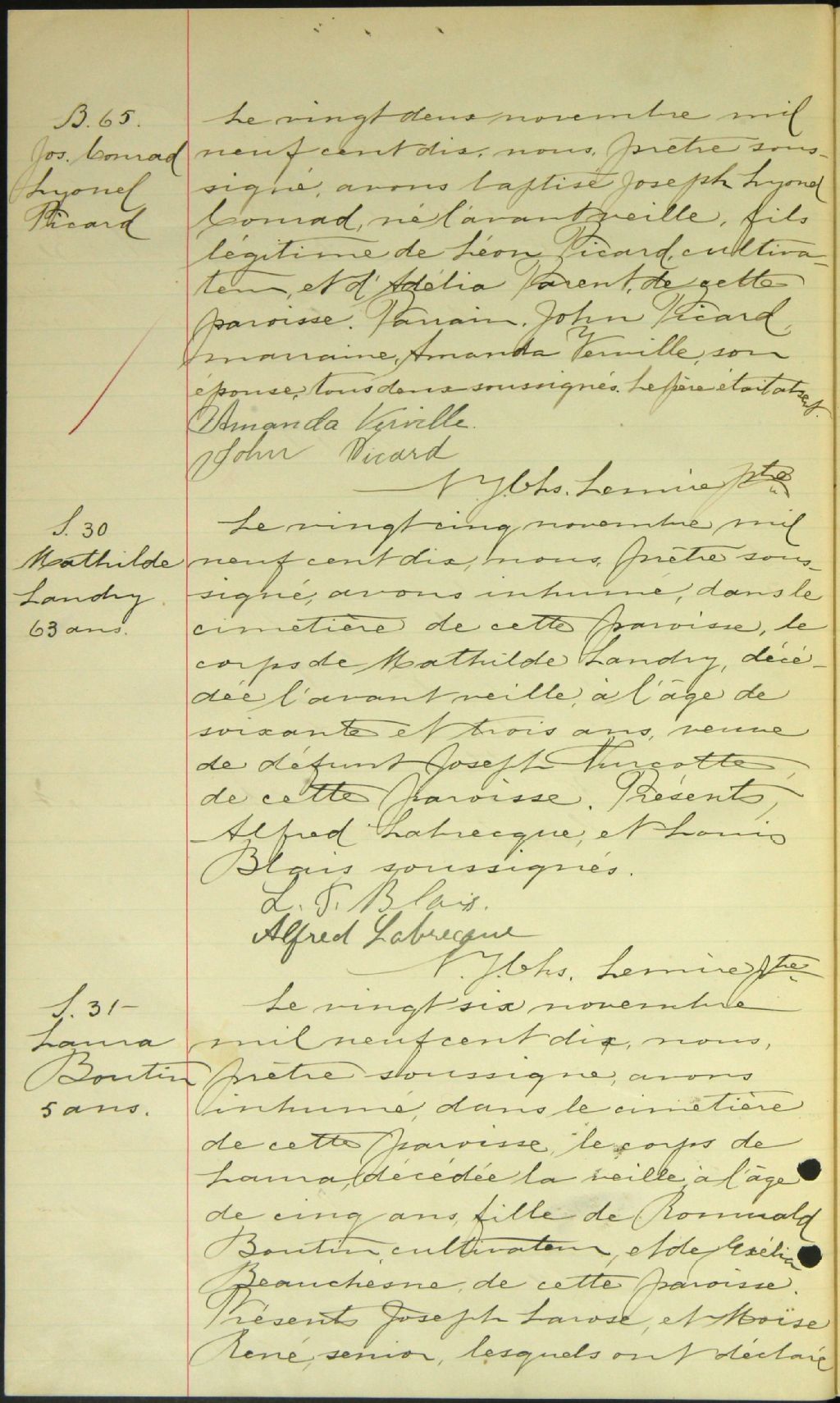 - Cette série regroupe les registres originaux de l'état civil, lesquels contiennent les enregistrements de baptêmes, de mariages et de sépultures consignés par le curé ou son représentant desservant la communauté de confession catholique de la paroisse Saints-Anges de Ham-Nord. On retrouve également, en règle générale, un index nominatif à la fin de chaque registre.Les registres de 1869, 1874 et de 1876 à 1880 comprennent aussi les entrées de Saint-Olivier de Garthby (qui deviendra Saint-Charles-Borromée de Garthby CE305,S35). Les registres de 1877 à 1883 comprennent aussi les entrées de la paroisse Saint-Adrien (CE501,S99).