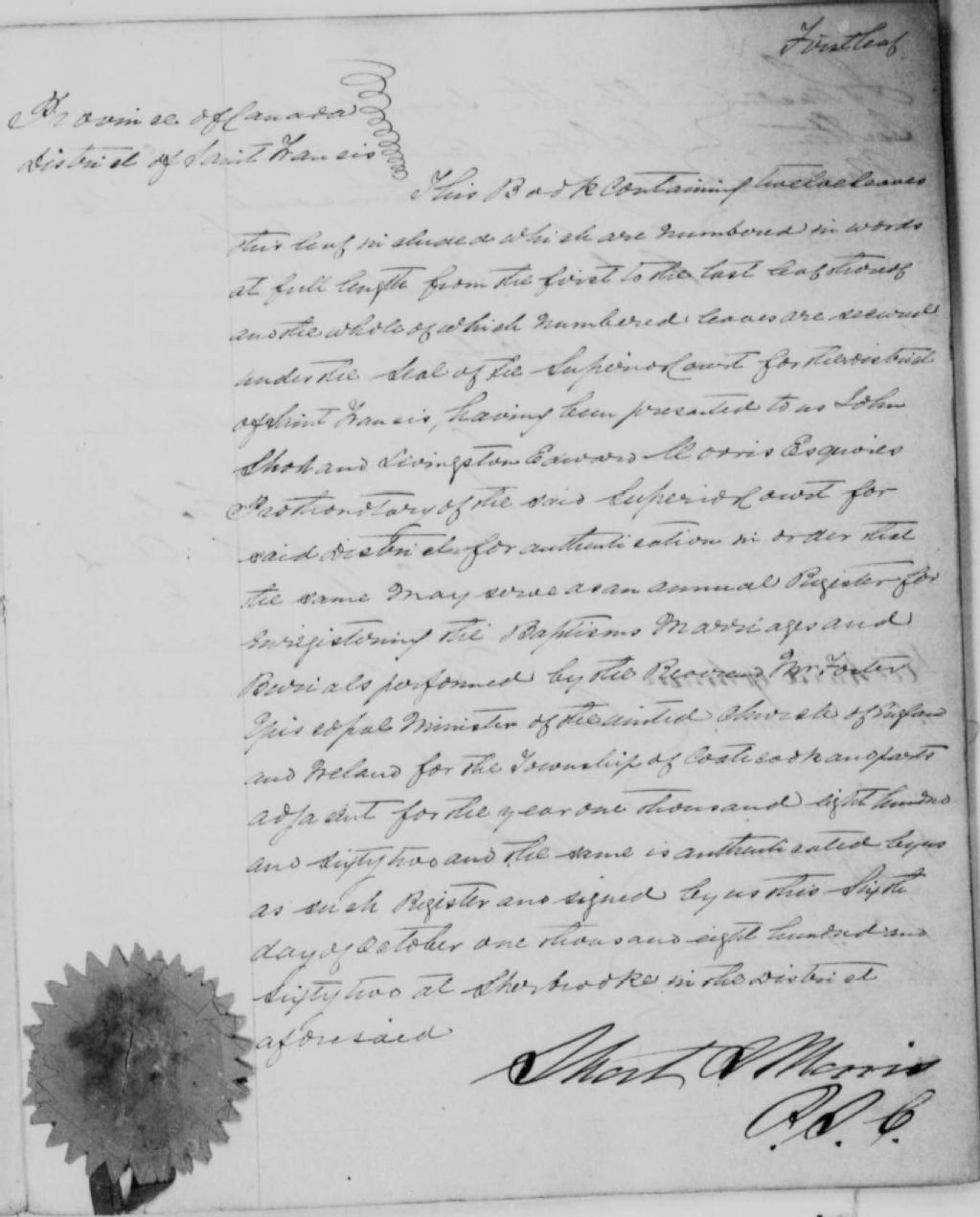 - La série regroupe les registres originaux de l'état civil, lesquels contiennent les enregistrements de baptêmes, de mariages et de sépultures consignés par le ministre desservant la communauté de confession anglicane de Coaticook et des environs (cantons Barnston, Barford et Hereford). On retrouve également, en règle générale, un index nominatif situé à la fin de chaque registre