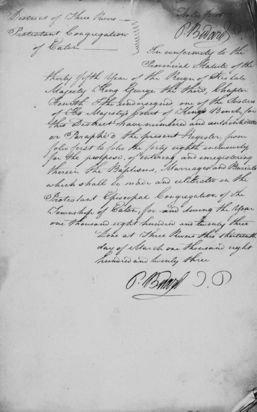 - La série regroupe les registres originaux de l'état civil, lesquels contiennent les enregistrements de baptêmes, de mariages et de sépultures consignés par le ministre desservant la communauté de confession anglicane de Cookshire. On retrouve également, en règle générale, un index nominatif situé à la fin de chaque registre.Les pasteurs anglicans qui desservaient Cookshire ont également desservis d¿autres localités avoisinantes, telles que Birchton et Eaton.