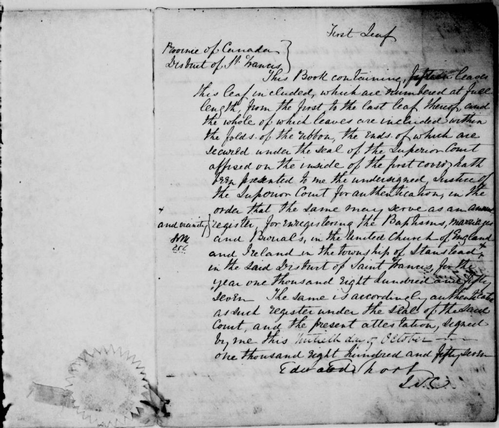 - La série regroupe les registres originaux de l'état civil, lesquels contiennent les enregistrements de baptêmes, de mariages et de sépultures consignés par le ministre desservant la communauté de confession anglicane de Stanstead Plain et de Beebe Plain. On retrouve également, en règle générale, un index nominatif situé à la fin de chaque registre
