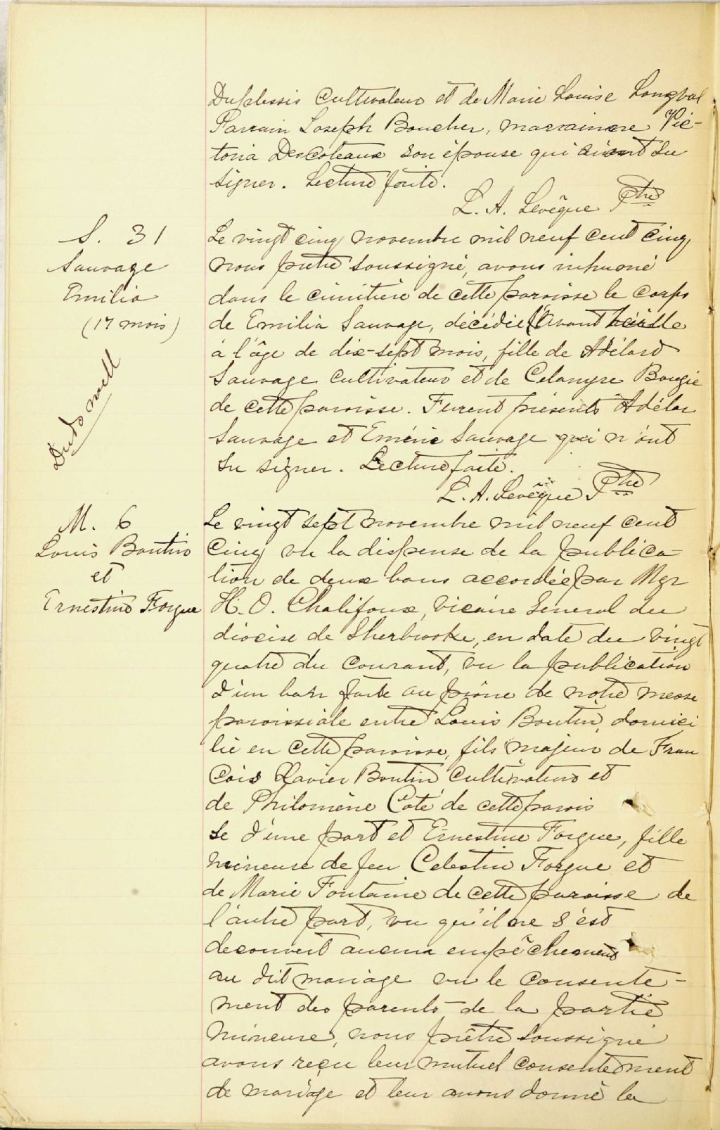 Saint-Camille, 1868-1921, Archives nationales à Sherbrooke, Fonds Cour supérieure. District judiciaire de Saint-François. État civil, (05S,CE501,S7).