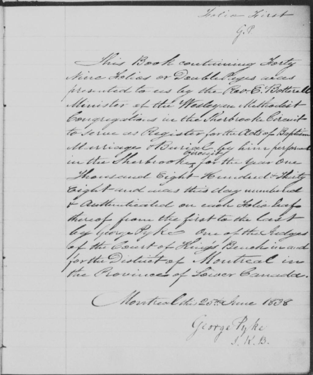 Cette série regroupe les registres originaux de l'état civil, lesquels contiennent les enregistrements de baptêmes, de mariages et de sépultures consignés par le ministre desservant la communauté de confession méthodiste de Compton. On retrouve également, en règle générale, un index nominatif situé à la fin de chaque registre