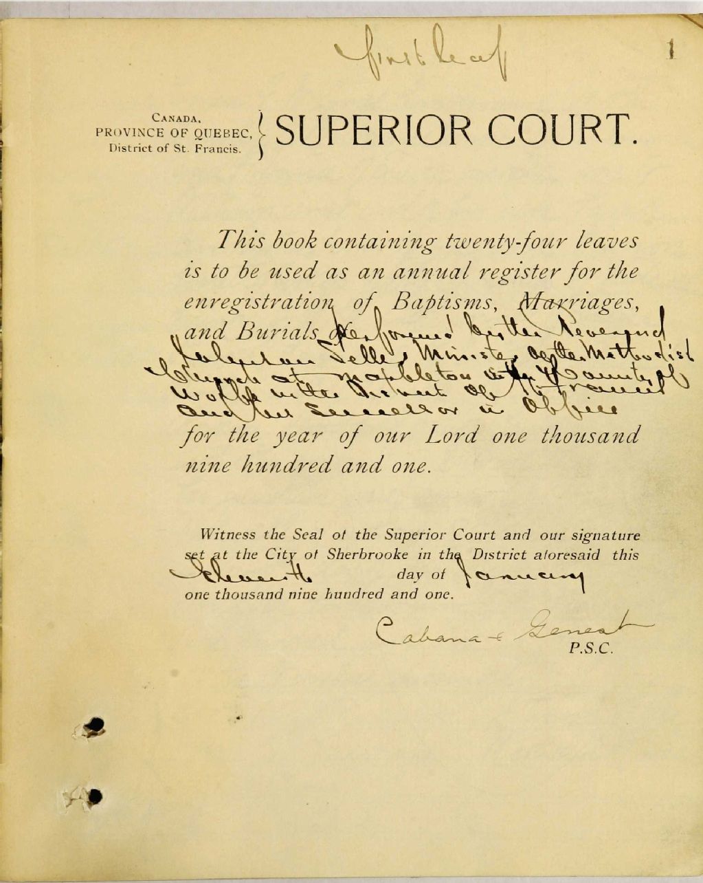 Cette série regroupe les registres originaux de l'état civil, lesquels contiennent les enregistrements de baptêmes, de mariages et de sépultures consignés par le ministre desservant la communauté de confession méthodiste de Marbleton, dans le canton de Dudswell. On retrouve également, en règle générale, un index nominatif situé à la fin de chaque registre.Les pasteurs méthodistes qui desservaient Marbleton ont également desservis d¿autres localités avoisinantes situées dans le canton de Dudswell, mais également des localités situées dans les cantons de Weedon, de Bury et de Ham.Avant 1861, voir Eaton Methodist Circuit (CE501,S77). À partir de 1869, voir aussi Bury Methodist Church (CE501,S172) puisque des entrées pour le canton de Dudswell s¿y font régulièrement
