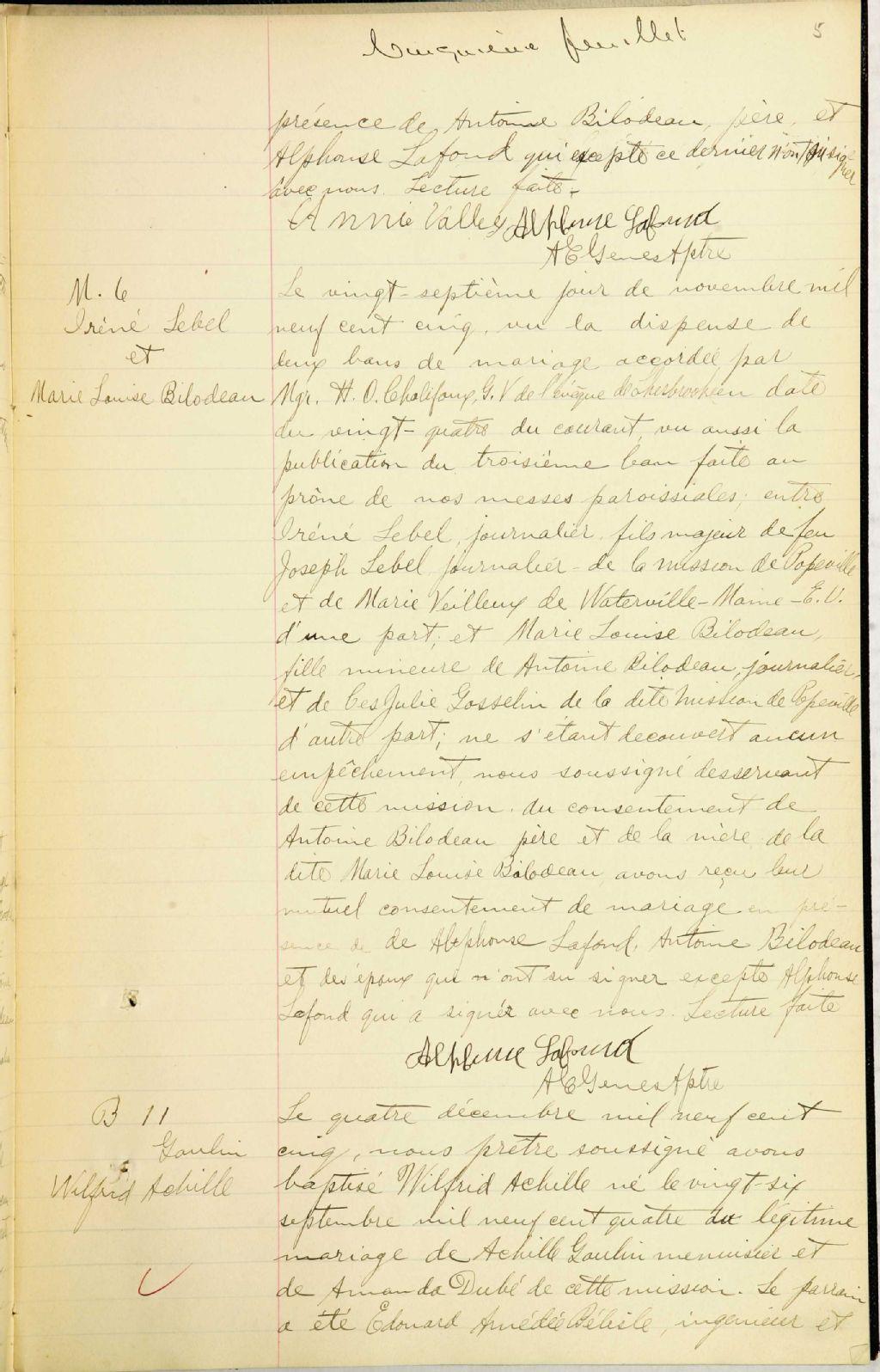 - Cette série regroupe les registres originaux de l'état civil, lesquels contiennent les enregistrements de baptêmes, de mariages et de sépultures consignés par le curé ou son représentant desservant la communauté de confession catholique de la paroisse Notre-Dame-du-Saint-Rosaire de Sawyerville. On retrouve également, en règle générale, un index nominatif à la fin de chaque registre.Pour 1889 à 1892, voir Saint-Camille de Cookshire (CE501,S8)Le registre de 1914 contient, entre autres, des entrées pour la paroisse Saint-Isidore (CE501,S183); ceux de 1915, de 1917 et de 1918 contiennent des entrées pour Saint-Camille de Cookshire (CE501,S8) et pour la mission Sainte-Famille de Newport (qui deviendra la paroisse Saint-Jacques-le-Mineur d'Island Brook). En 1920, le curé de cette paroisse dessert également la mission de Newport et Island Brook.